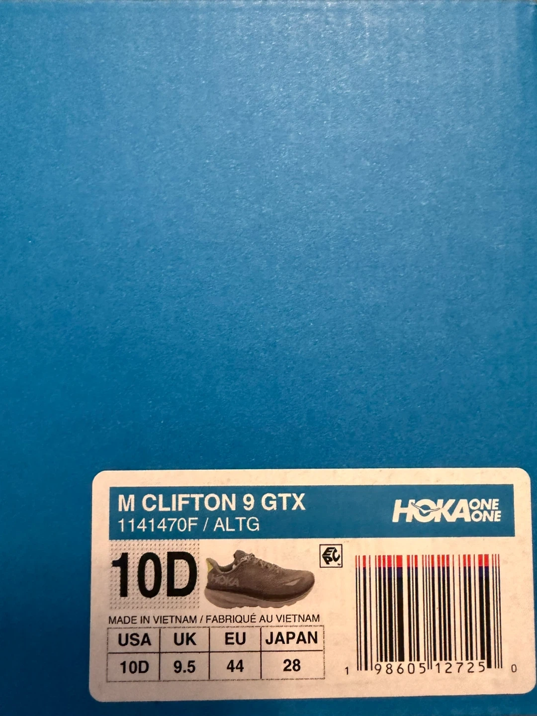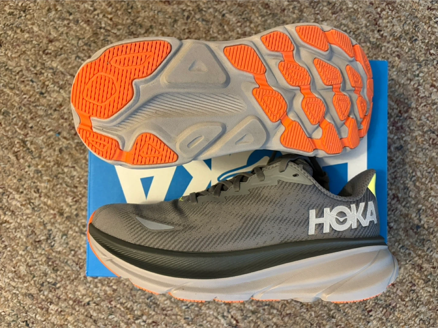 Selling a pair of Hoka Clifton 9 GTX in grey, size 10US for men.