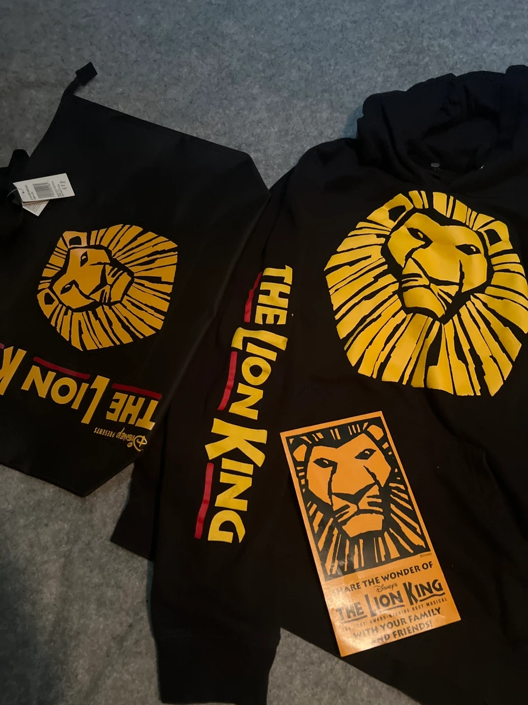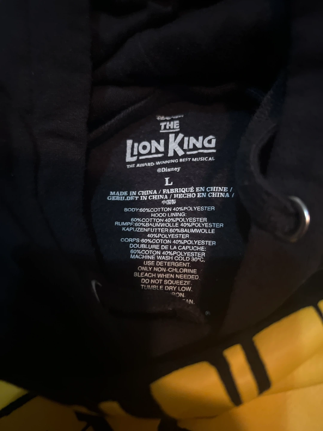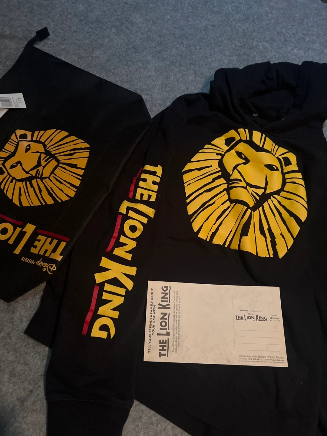 BRAND NEW hoodie and tote bag set featuring The Lion King design. The hoodie is size Large and made from a blend of 60% cotton and 40% polyester. And postcard.