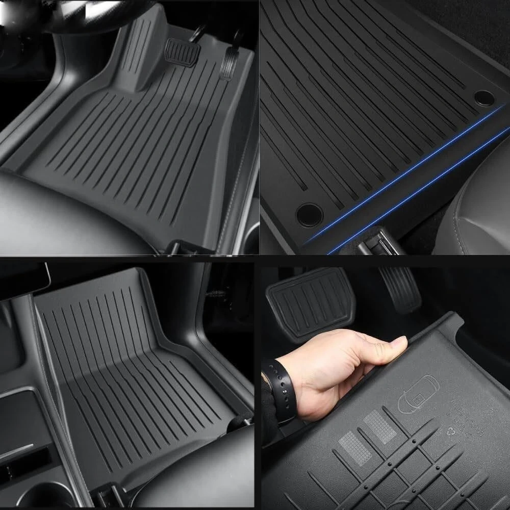 Protect your Tesla Model Y with this complete set of all-weather floor mats. They are designed for a precise fit and provide excellent protection against spills and debris. Easy to clean and durable for everyday use!