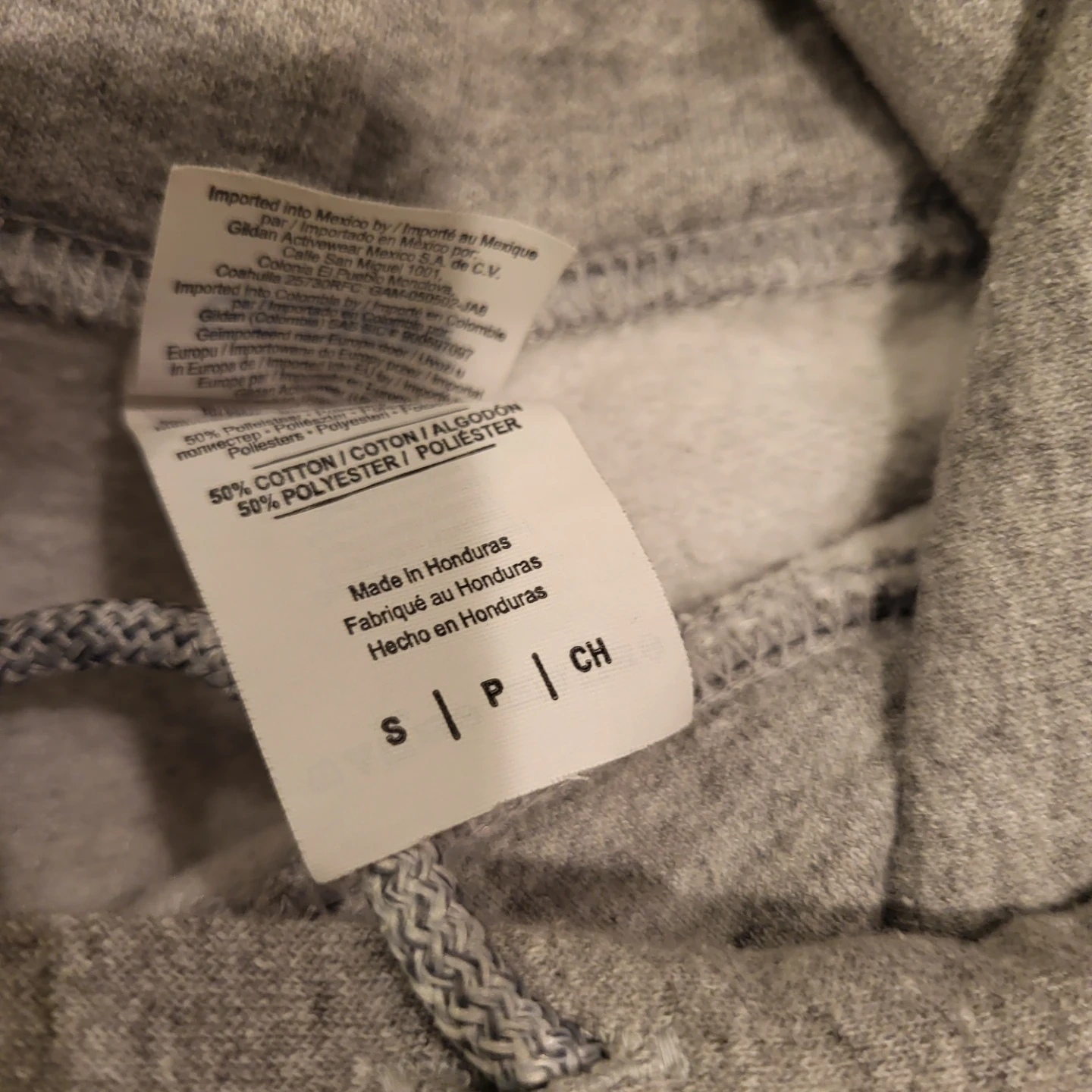 Grey Gildan Heavy Blend hoodie featuring the Toronto Maple Leafs logo. Made with a 50% cotton and 50% polyester blend. Size small.