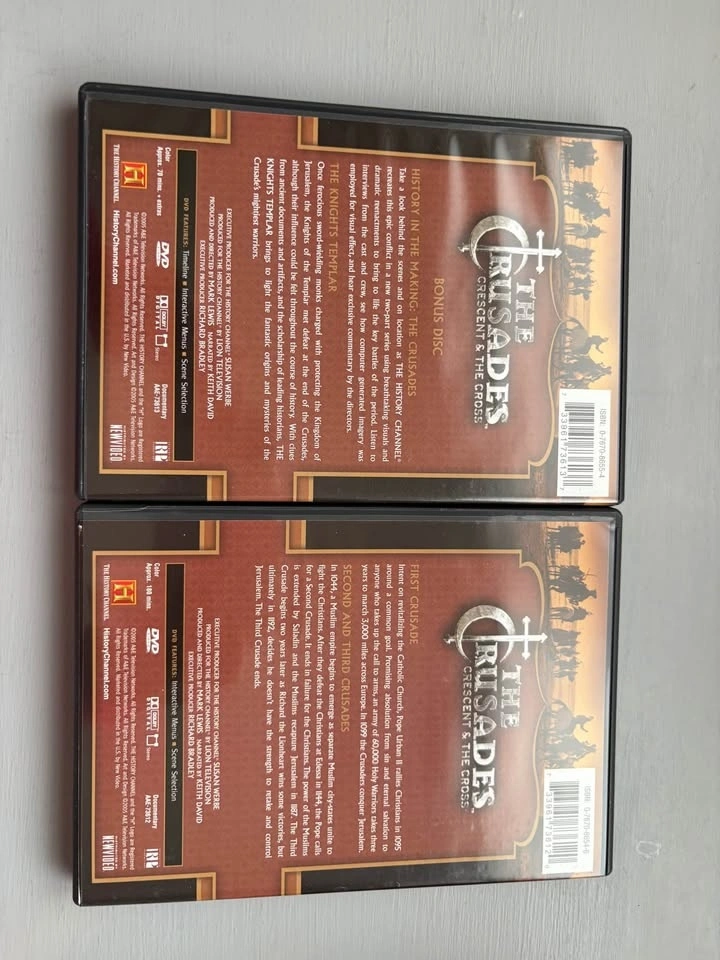 Complete 2-DVD set from The History Channel titled The Crusades: Crescent & the Cross. Covers the First Crusade and includes a bonus disc on the Knights Templar. Great historical documentary for anyone interested in medieval history, crusades, or religious history.