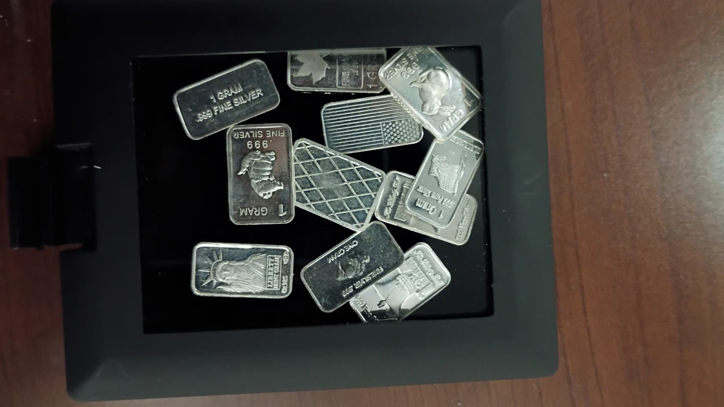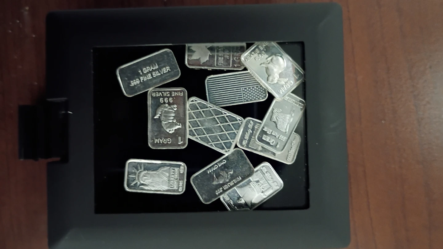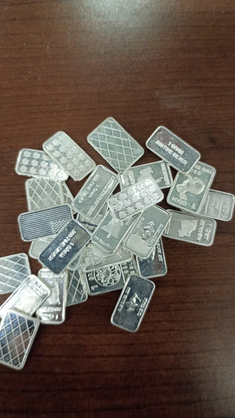 This is a lot of 1 gram silver bars. Each bar is .999 fine silver. They come in a plastic pouch. Display is $10.