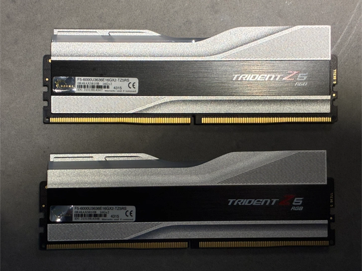 Two G.Skill Trident Z5 RGB DDR5 RAM modules, each 16GB, for a total of 32GB. These sticks feature RGB lighting and a sleek silver and black heatsink design. Fantastic condition, only reason for selling is that I’m moving to a MacBook and no longer need my desktop.