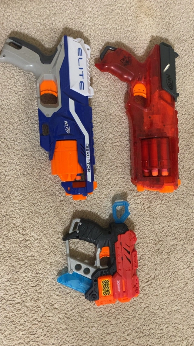 Selling old Nerf guns I don't use anymore. The big ones are $10 each and the small one is $5. They all work perfectly and are in really good condition.