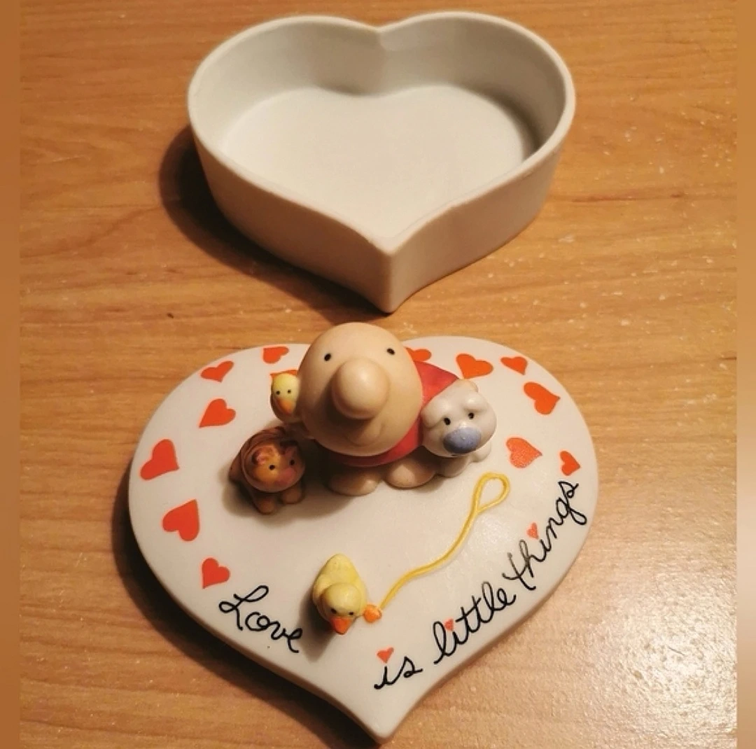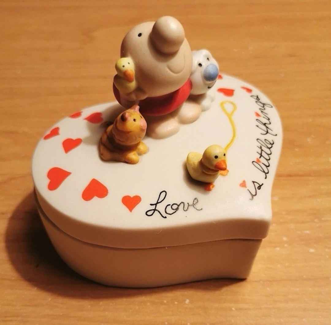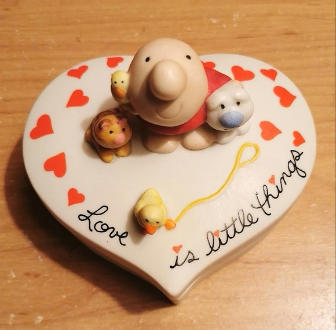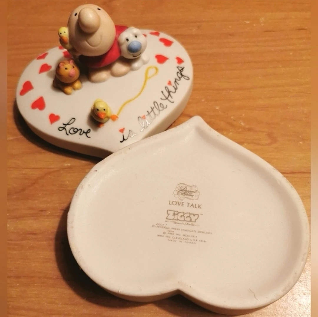 Vintage Ziggy 'Love is Little Things' Porcelain Heart Shaped Trinket Box