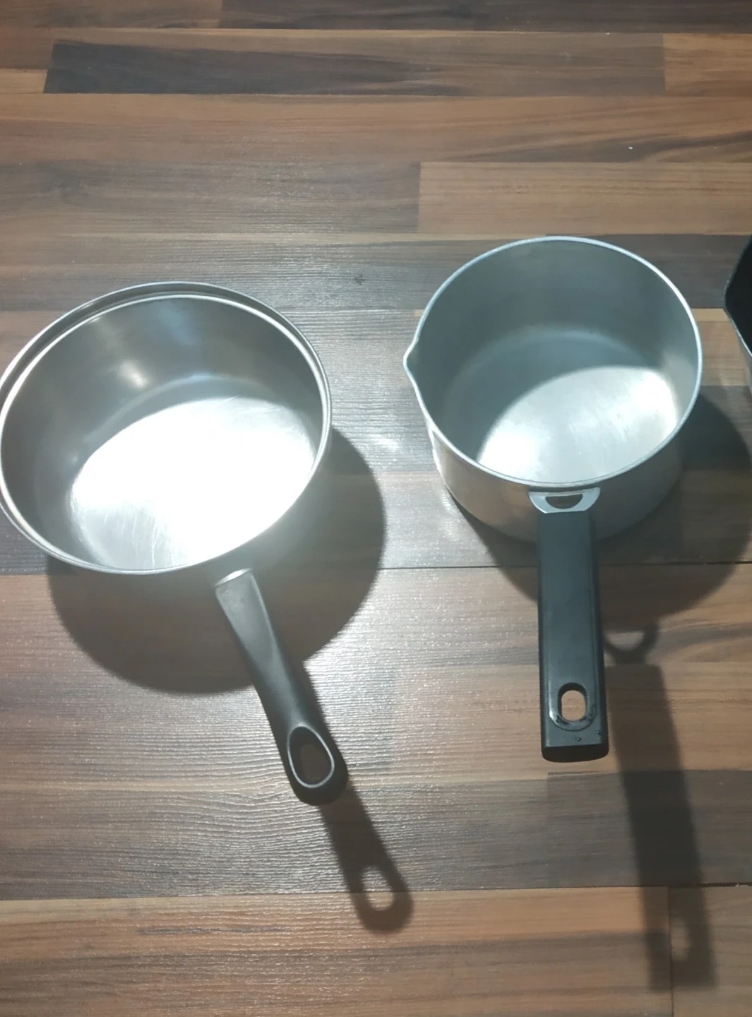Stainless steel heavy bottom sauce pan on sale. $15 for two or one for $10.Very good condition as good as new.