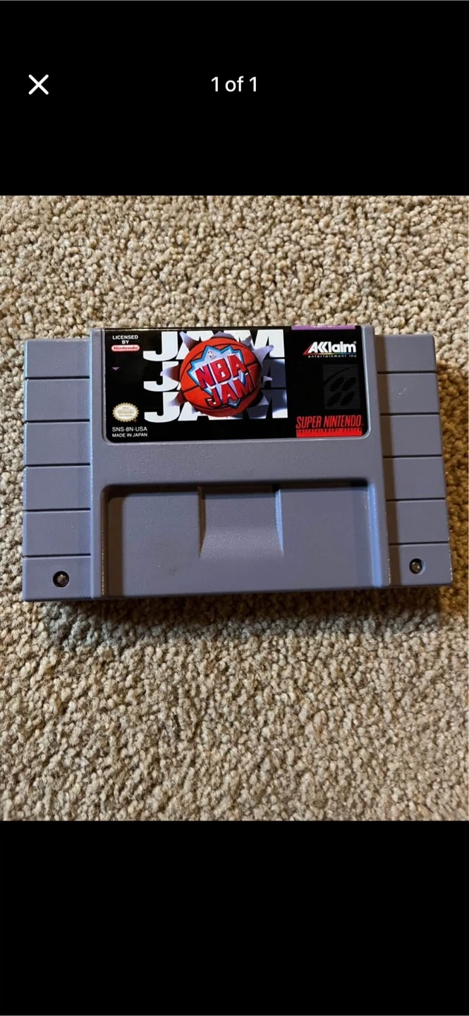 NBA Jam for the Super Nintendo Entertainment System. This is the game cartridge only. It's licensed by Nintendo and made in Japan.