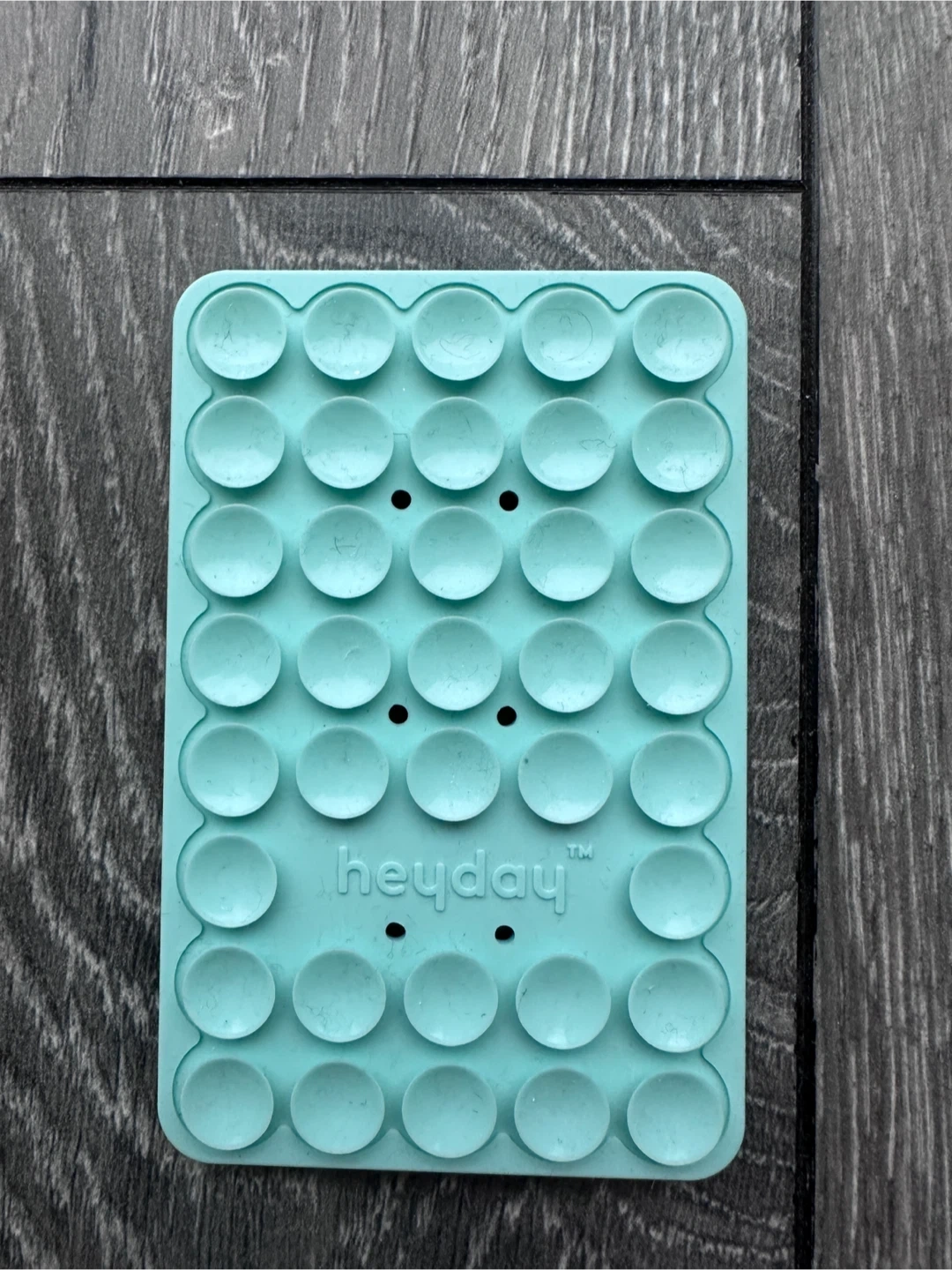 FREE light teal phone mat with suction cups. Useful to stick phone on mirrors or other surfaces! Some dust on item, but can be easily cleaned. Barely used. No holes, pet-free and smoke-free household. Pickup at 403 Church St.