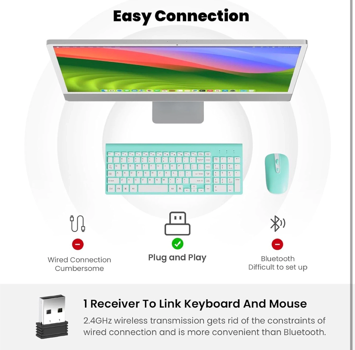 Aqua 2.4GHz Wireless Keyboard and Mouse Set