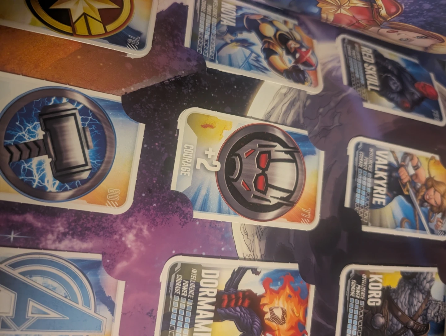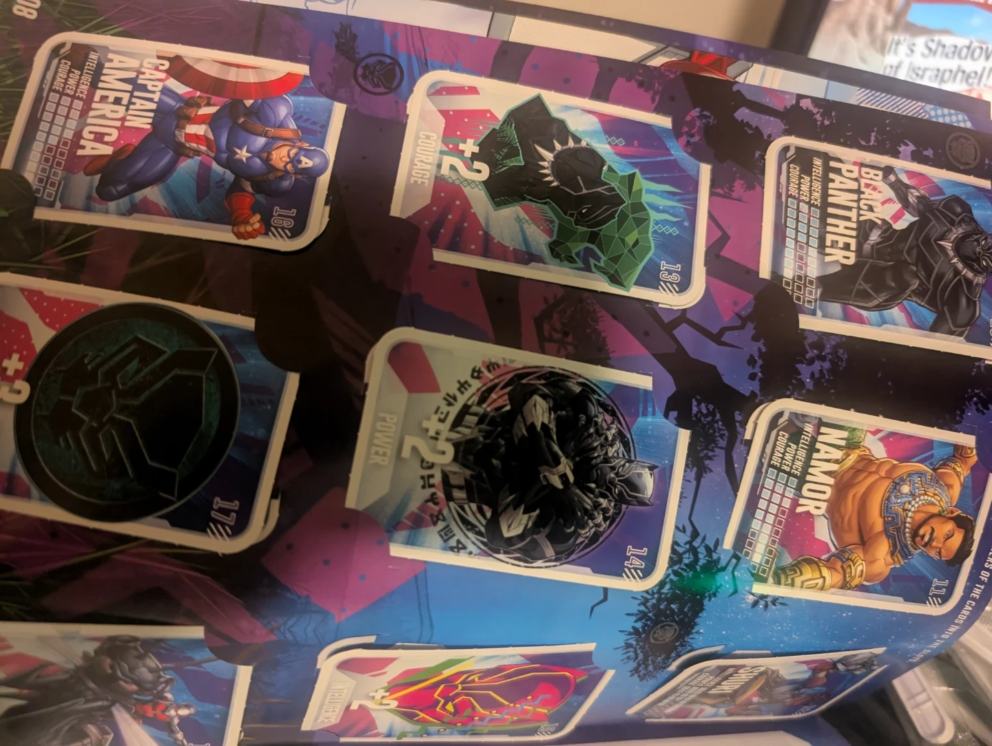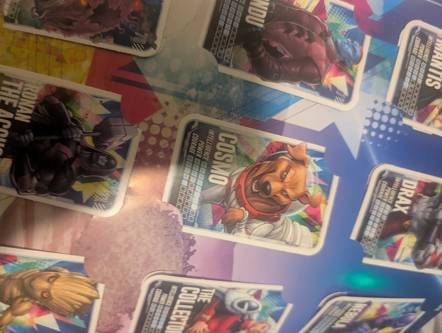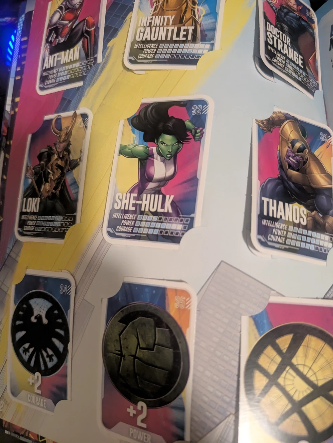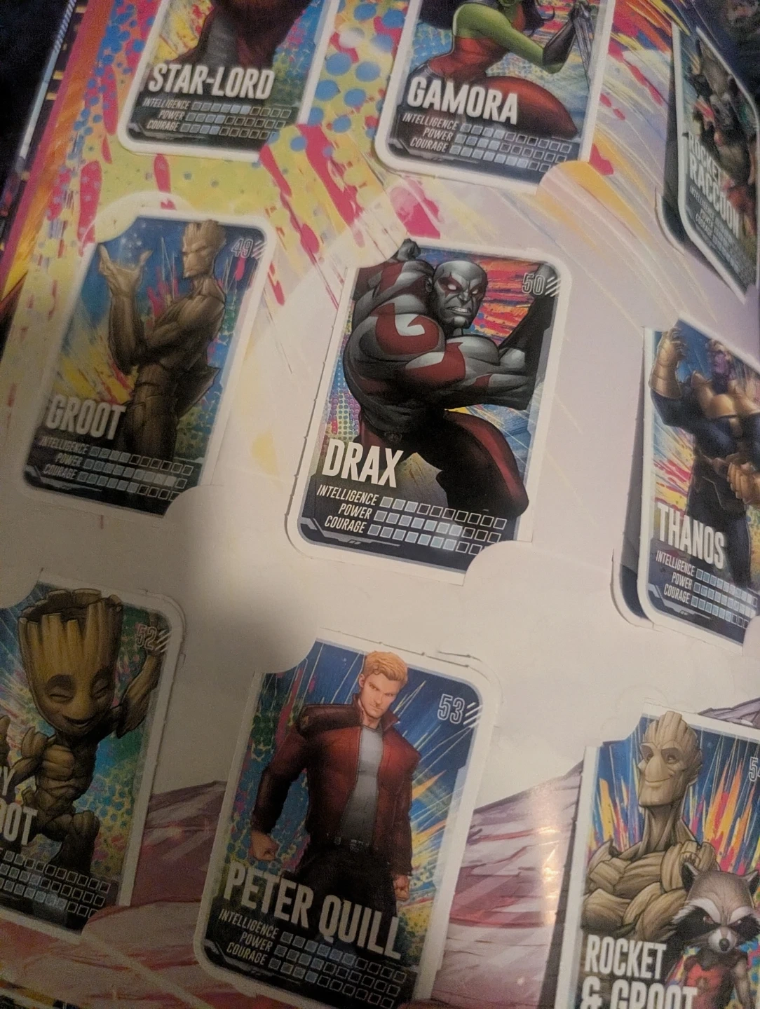 This Marvel Go On A Mission album is for collecting 90 cards. It features popular characters like Captain America, Iron Man, and Ms. Marvel. The album includes spaces to organize your card collection. Comes with all 90 cards
