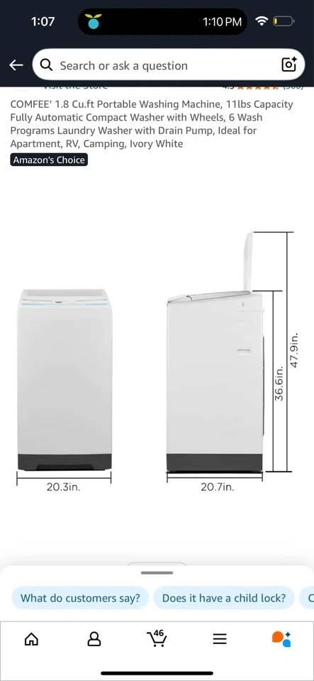 COMFEE 1.8 cu.ft Portable Washing Machine