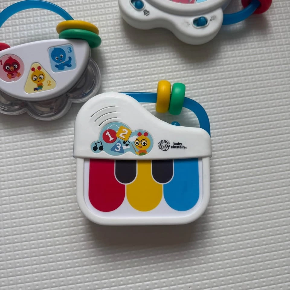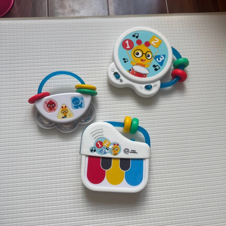 Selling a set of 3 Baby Einstein musical toys: a mini piano, musical drum, and rattle/tambourine. All sounds work, clean, and in good used condition. Batteries included. Great for babies and toddlers — easy to hold and fun sounds. Smoke-free home. Pickup in Richmond Hill.