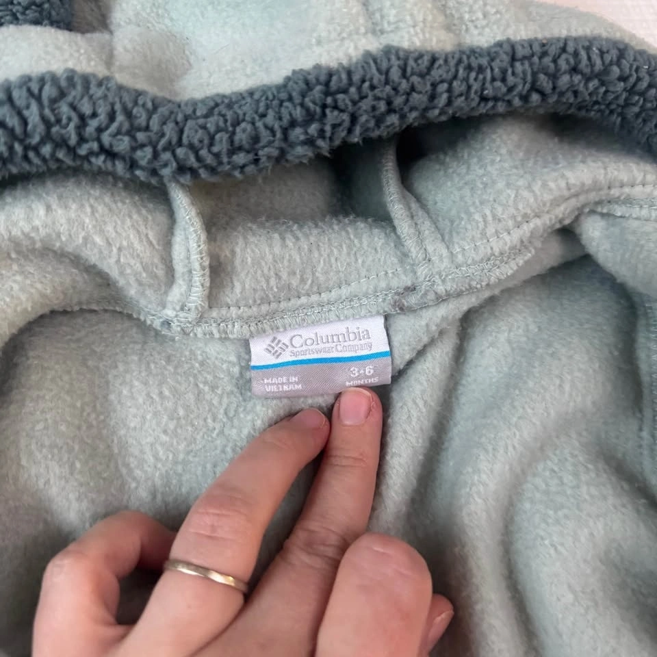 Columbia teal baby warm one piece bunting for 3-6 months. Gently used, unisex. Has a zip-up front and a hood with cute bear ears. My baby outgrew it. Pick up in Richmond Hill.
