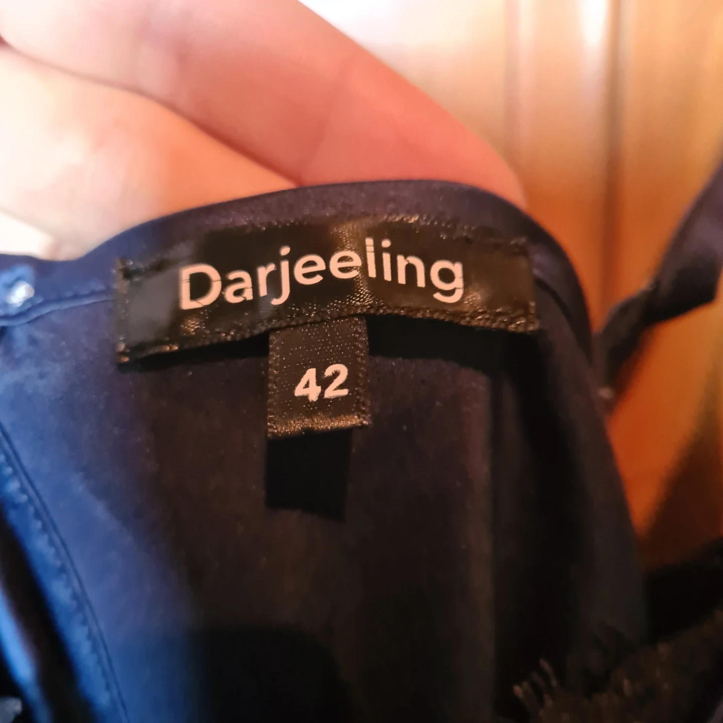 A lovely Darjeeling nightgown in a rich blue satin material. It features delicate black lace trim along the hem and neckline. Size 42 or L. This nightgown is perfect for comfortable evenings.