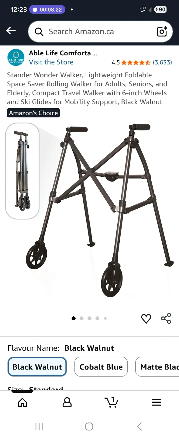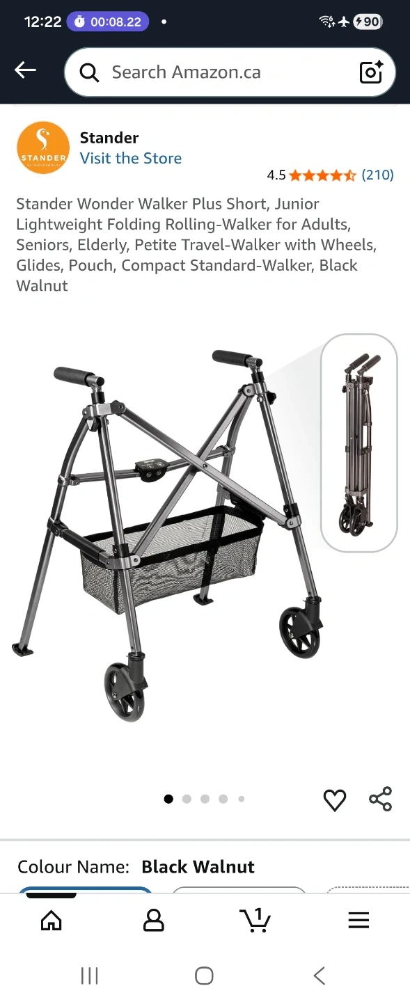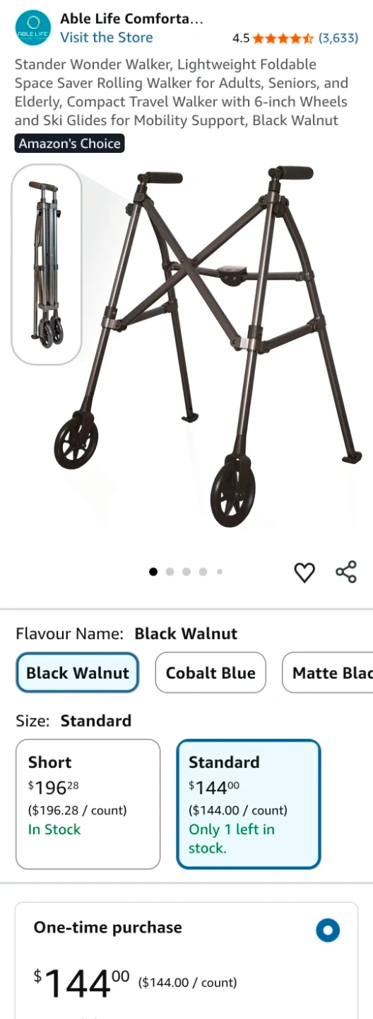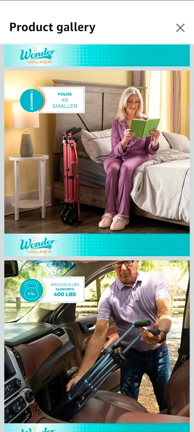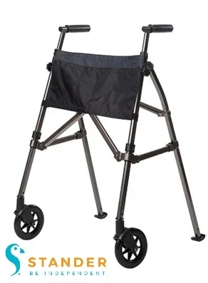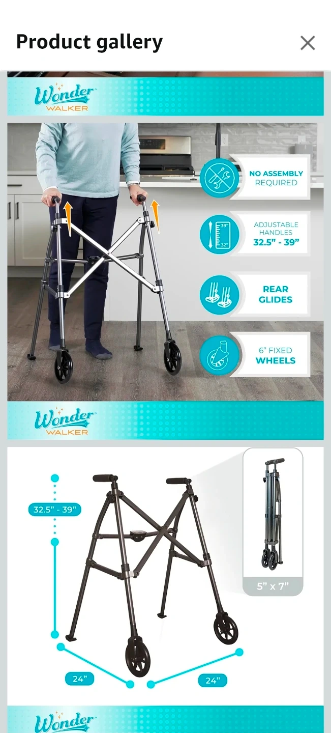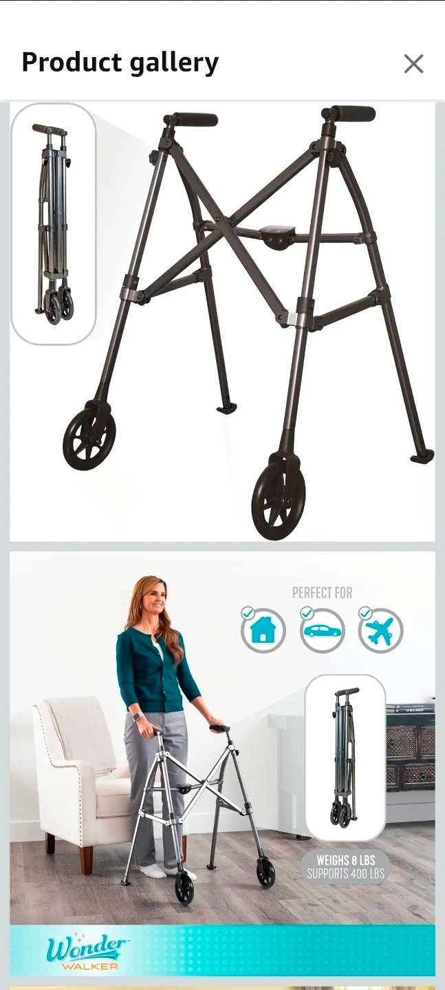 Get around with ease using this black walnut Wonder Walker! This lightweight, foldable walker is perfect for seniors or anyone needing a little extra support. It features 6-inch fixed wheels and ski glides, making it suitable for both indoor and outdoor use. Folds 4x smaller with EZ Fold-N-Go technology, aluminum frame supports up to 400 lbs.