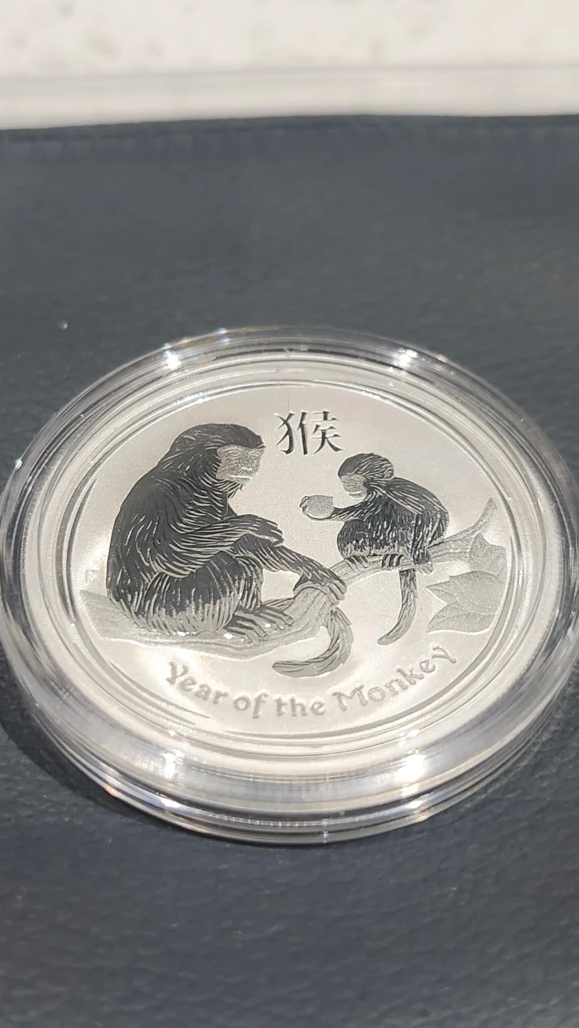 This is a 2016 Australian 50 cent coin, featuring the Year of the Monkey design. It's made of 1oz of 99.9% pure silver. This coin is in a protective plastic case. It would be a great addition to a coin collection!