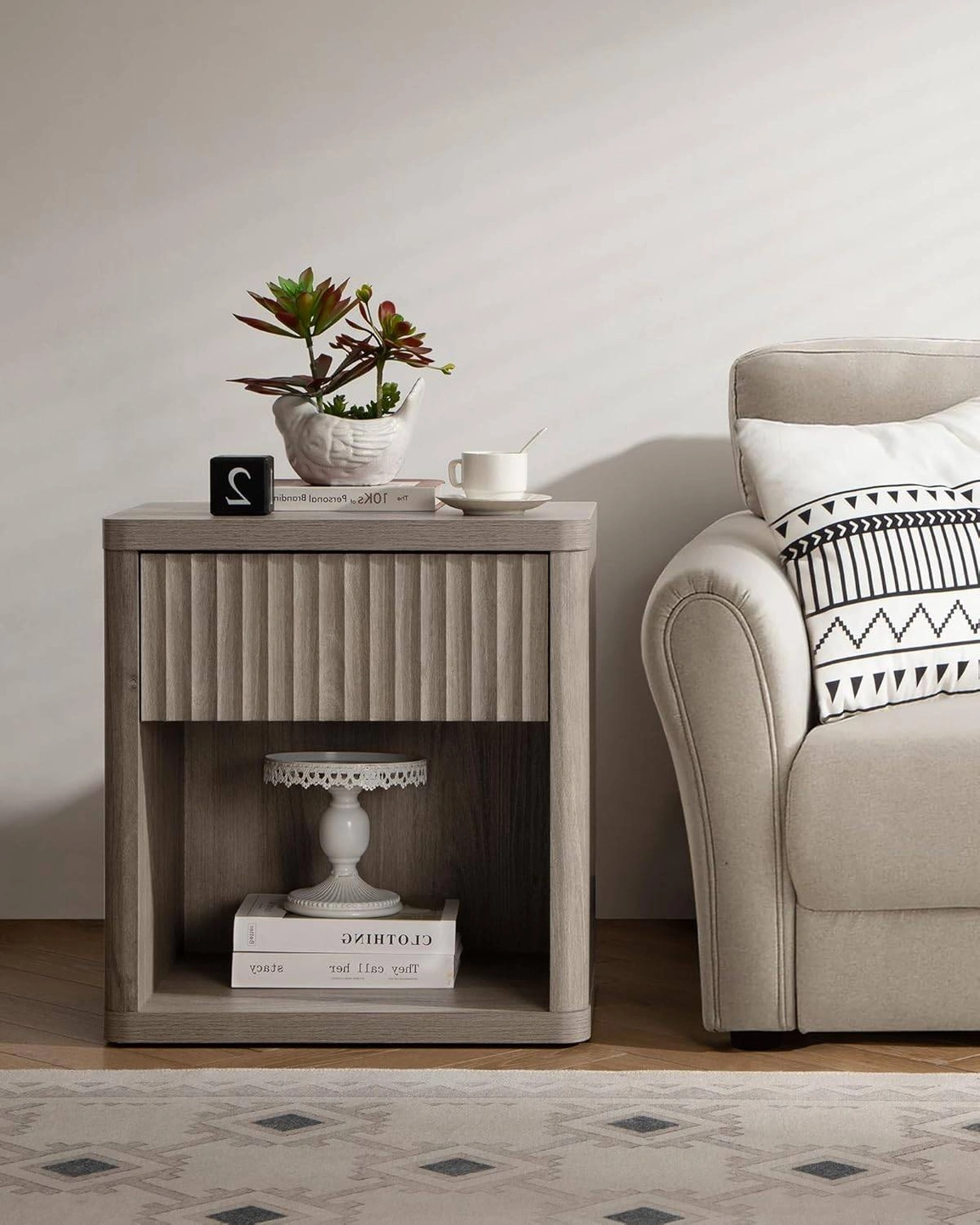 SICOTAS Fluted Nightstand with Drawer, Alder, NS1R1824/2324
