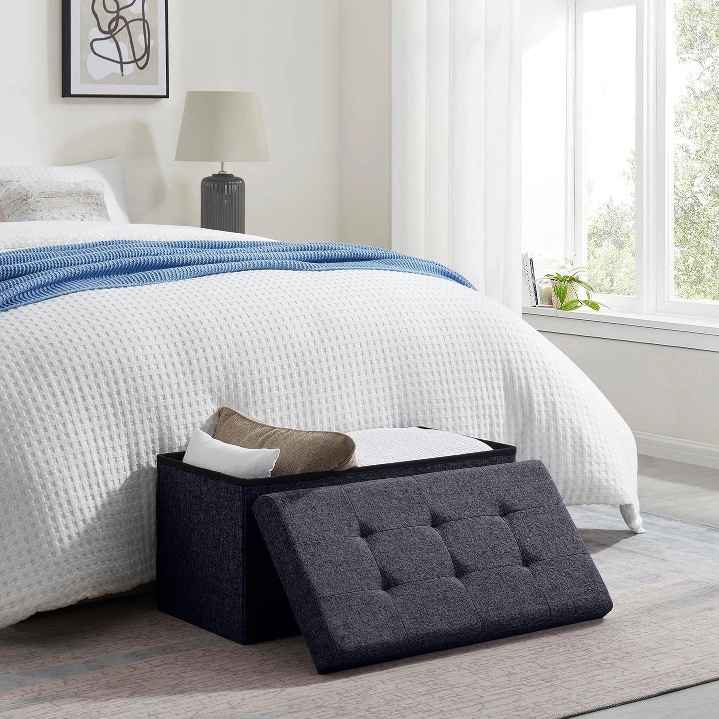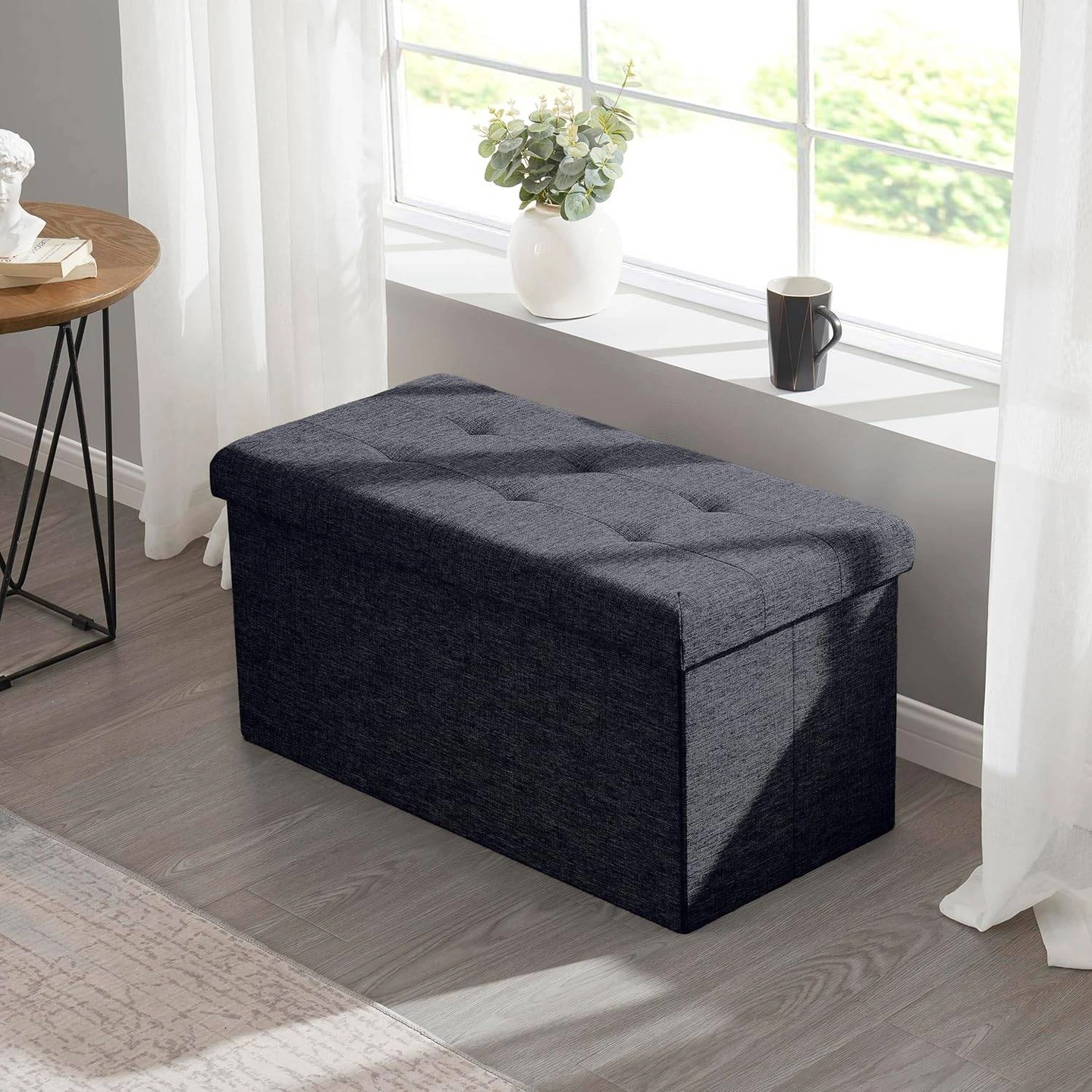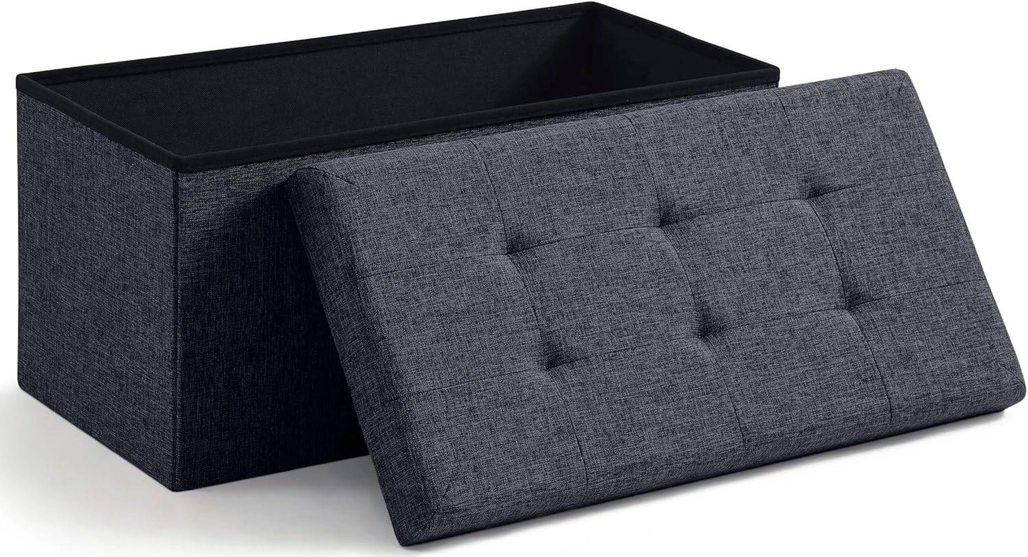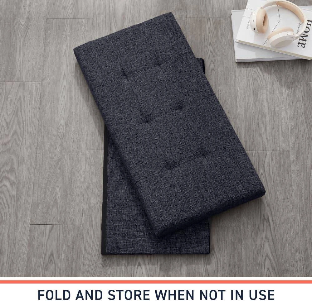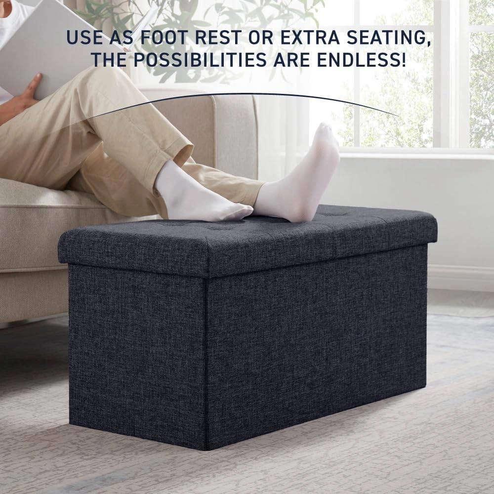 Foldable Tufted Linen Storage Ottoman Bench Foot Rest/Stool