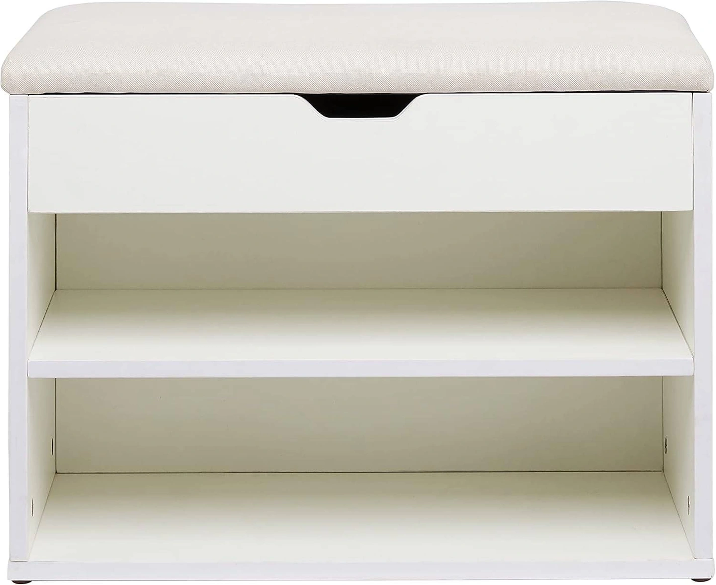 2 Tier Wooden Shoe Rack, Beige Fabric Cushion