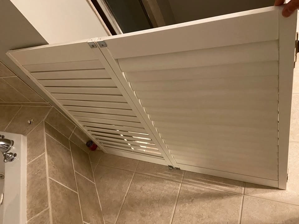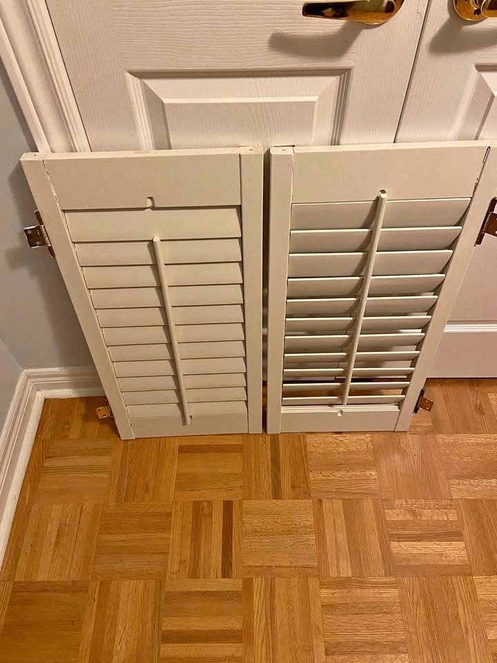 2 pairs of 14" x 29.25" each panel (opening 28 x 29.25) - $10 per panel. 2 pairs of 21" x 49" each panel - $10 per panel. Replaced windows/door so no longer needed. California wood shutters.