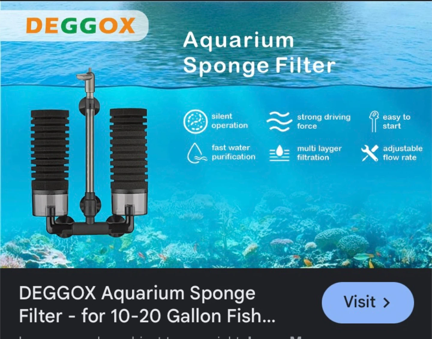 DEGGOS Aquarium Sponge Filter for 10-20 Gallon Tanks
