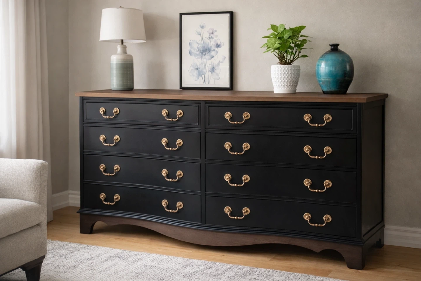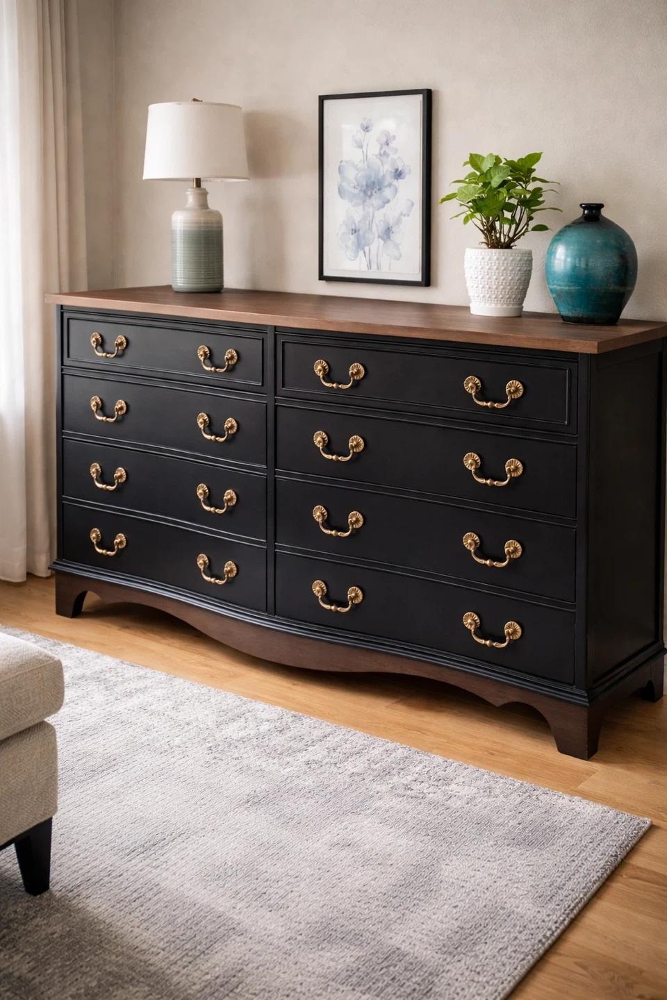 The serpentine front, solid mahogany construction, and freshly updated finish make it a standout luxury piece for any home.