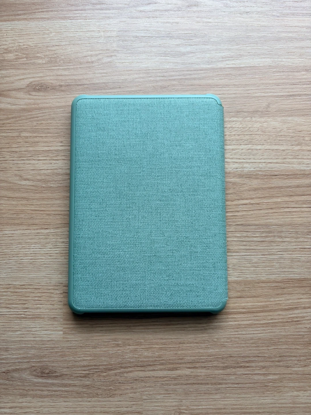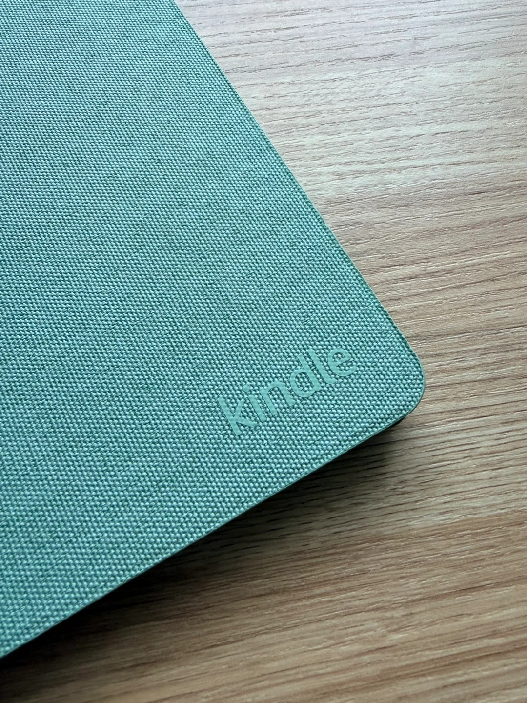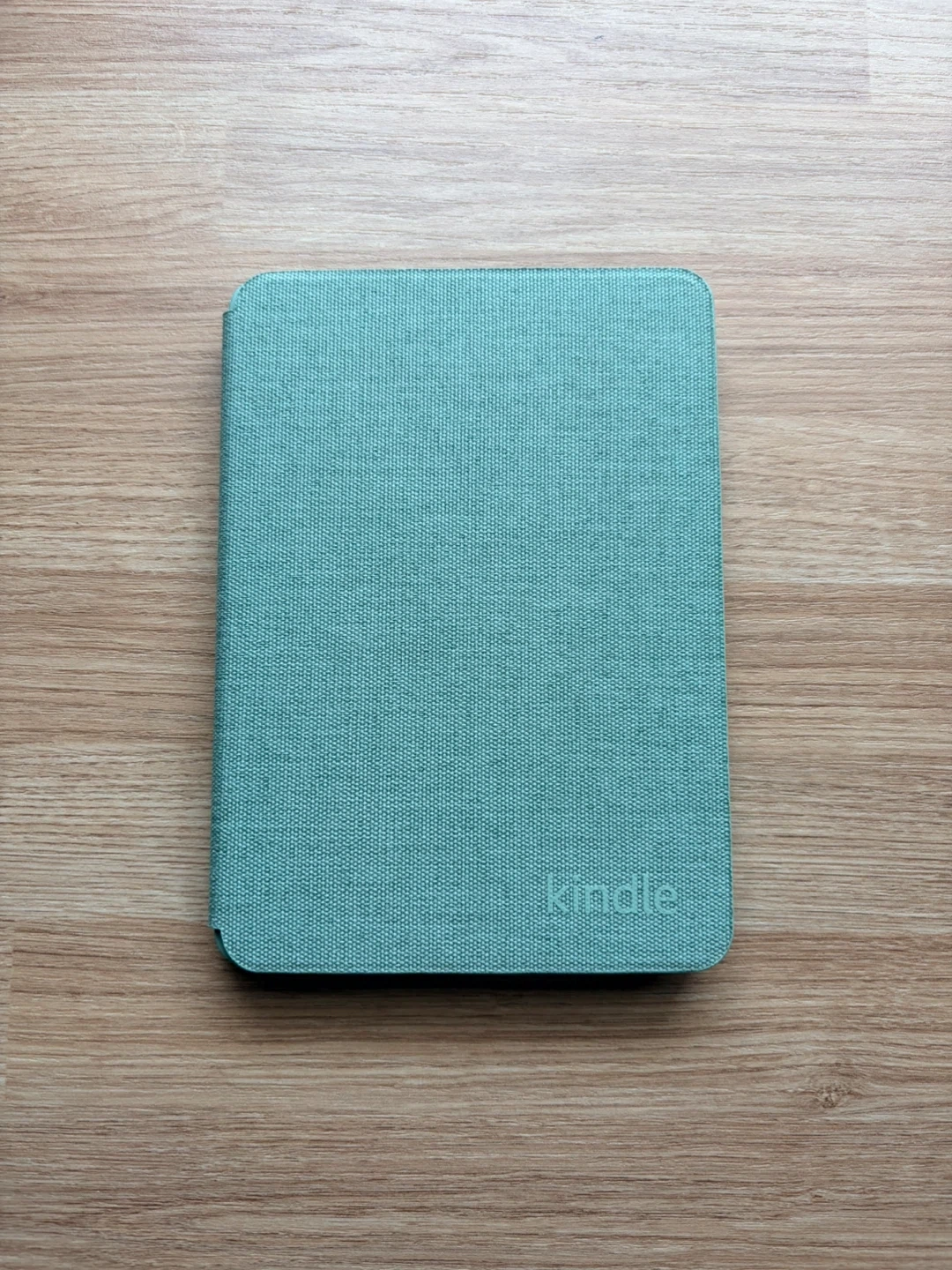 This is a teal Kindle Paperwhite case. It's made of fabric and snaps onto your device securely. It provides protection for your e-reader.