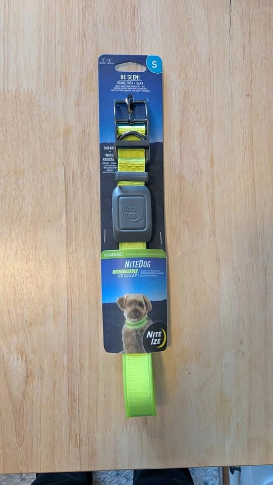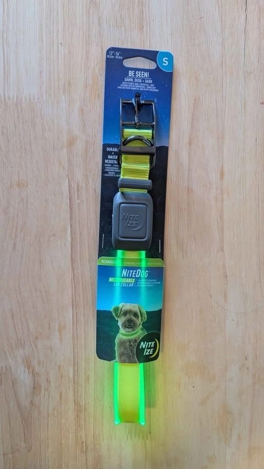 Brand new, never used NiteIze light-up dog collar with two modes. Size Small, fits 12" to 16" neck. Charges with micro-USB cable, lasts 7.5 hours on a 1.5-hour charge. Nothing wrong with it, just bought the wrong size. Pickup in Markham near 16th Ave and 9th Line.