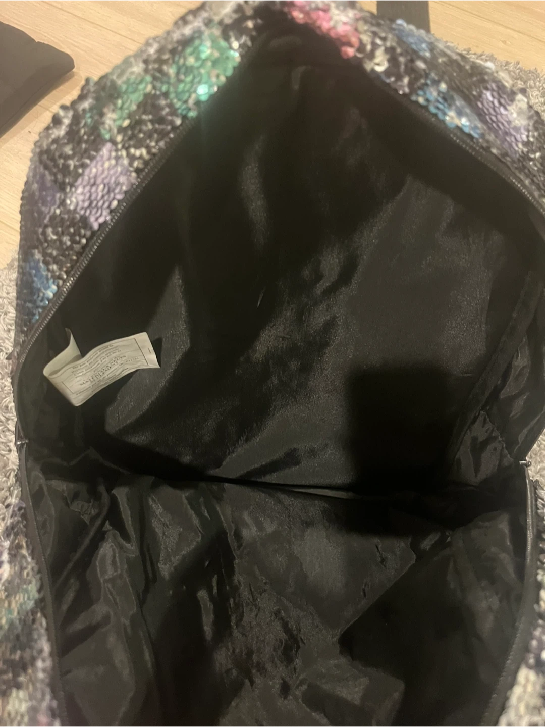 This backpack has a cool sequin checkerboard design! It features a main compartment and a front zippered pocket. It's perfect for school. Perfect condition barely used.