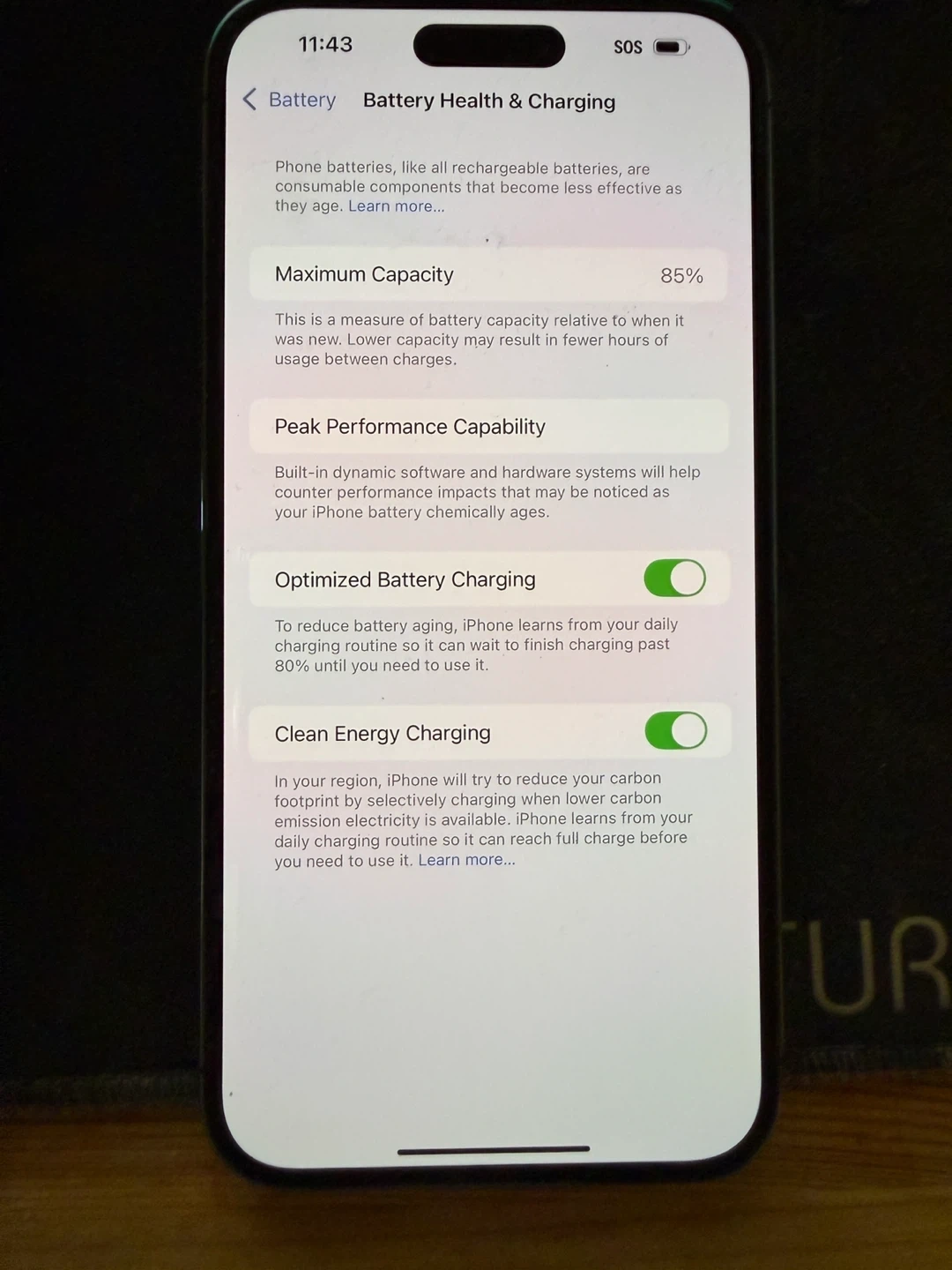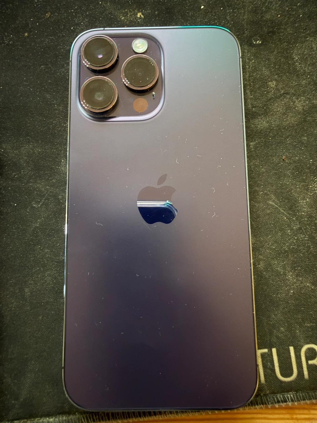 This is an Apple iPhone 14 Pro Max with 256GB storage. The phone's maximum battery capacity is at 85%. It has no SIM restrictions.