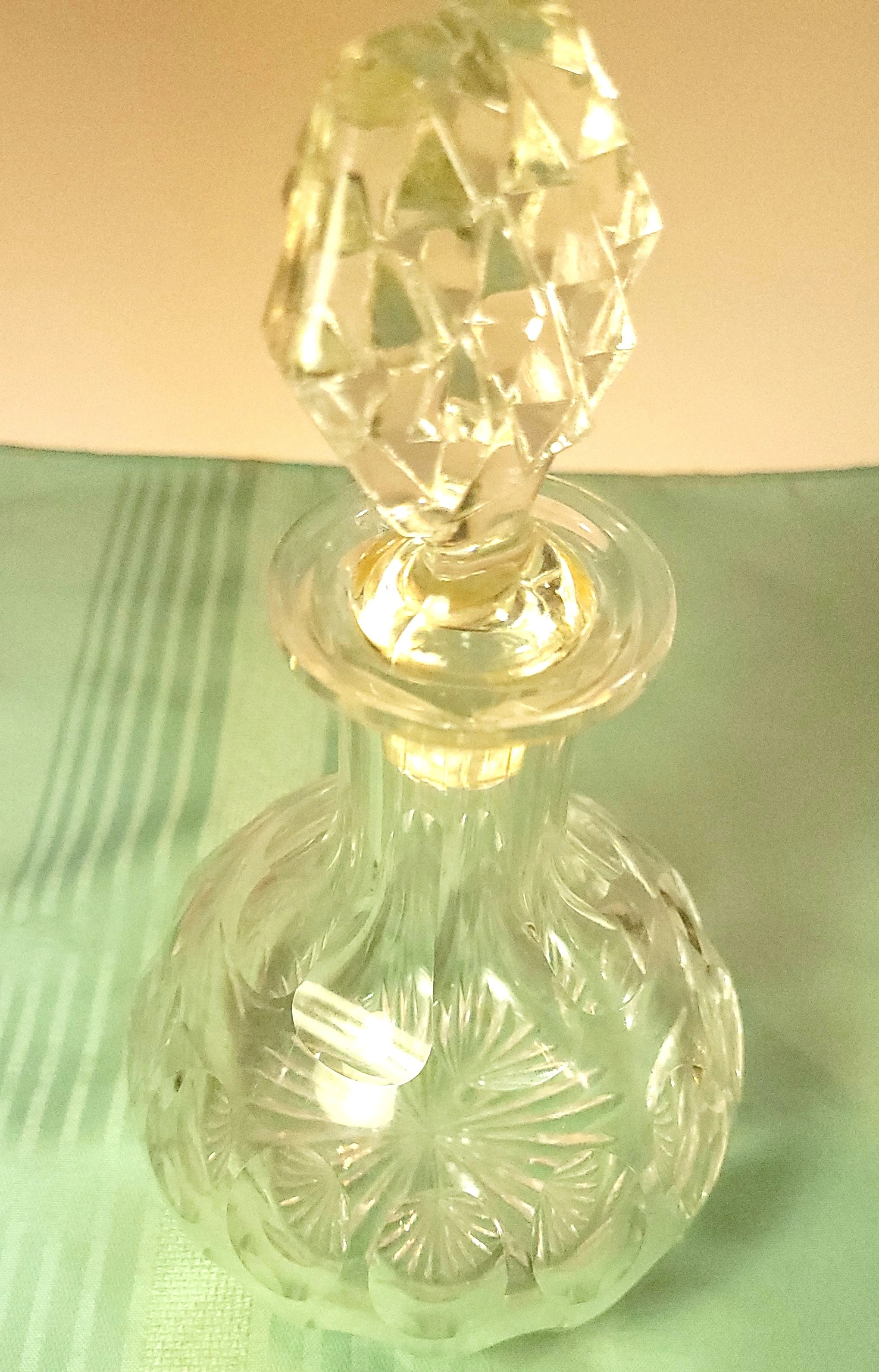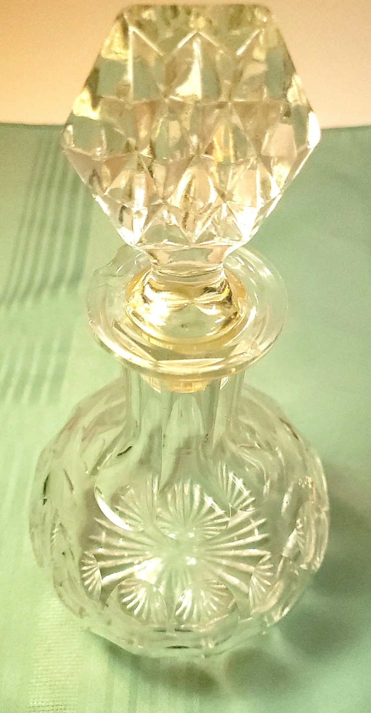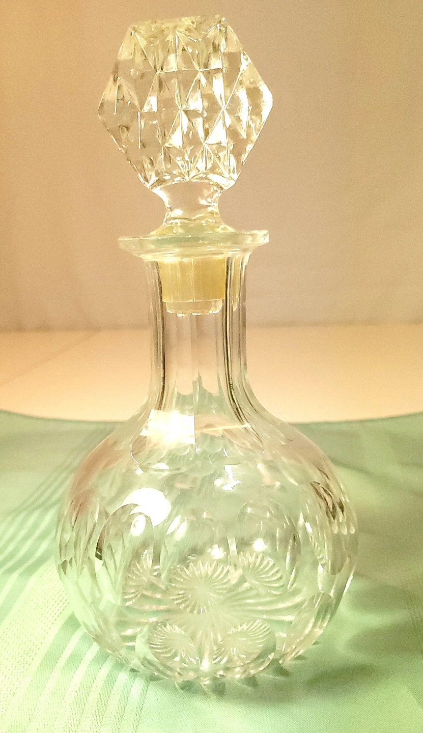 1960s Starburst Diamond Pressed Glass Decanter w/ Stopper 9"