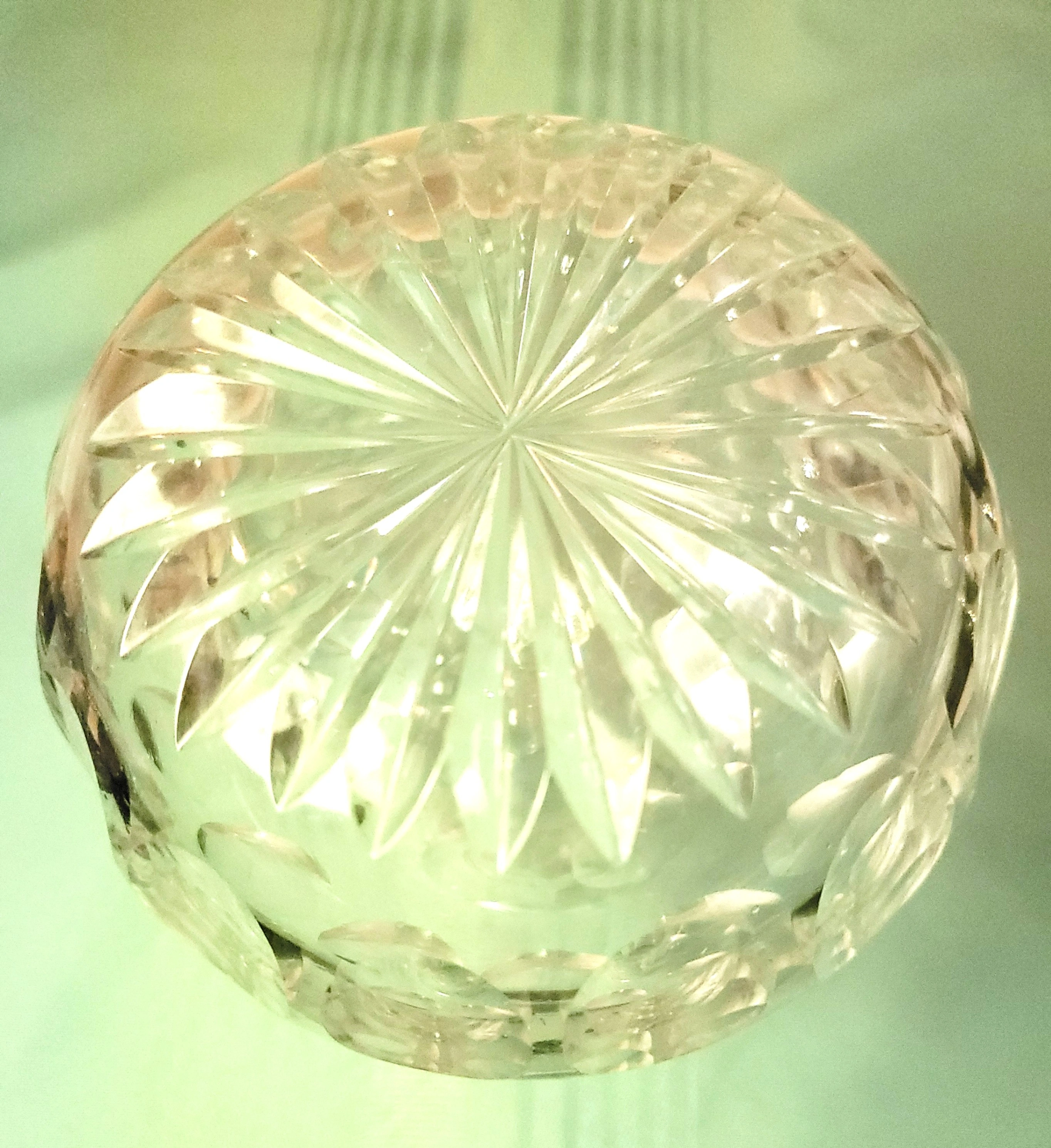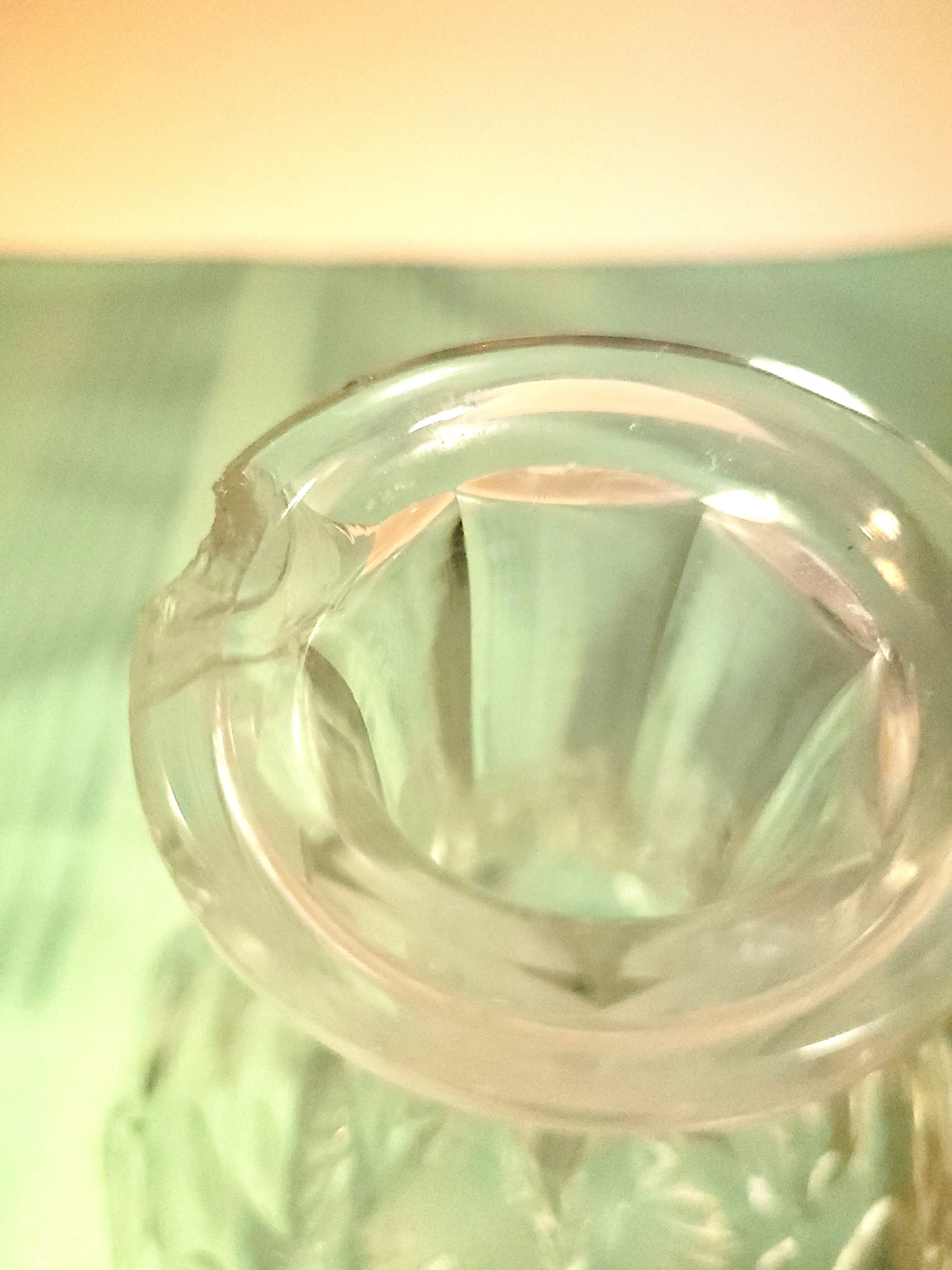 Body: Aside from the rim chip, the glass body is clear and brilliant with no cracks, scratches, or mineral "clouding."