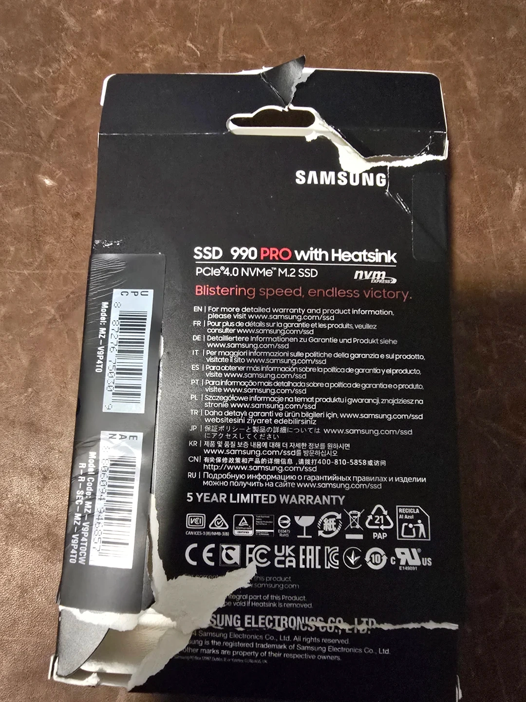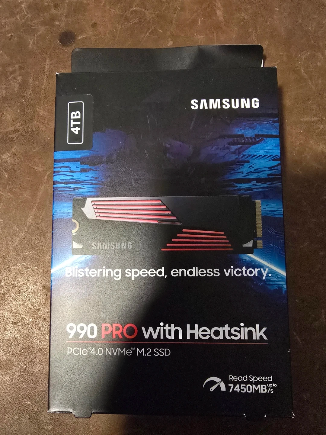 Samsung 990 PRO with Heatsink M.2 SSD. It's a 4TB PCIe 4.0 NVMe SSD. The read speed is up to 7450MB/s. It comes with a 5-year limited warranty.