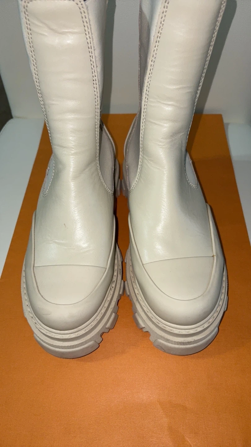 Ganni Women's Cream Leather Chelsea Boots Size 36