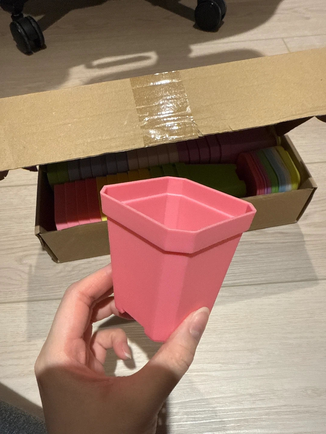 This is a set of 30 small, colourful plant pots. They're made of plastic and come in assorted vibrant colours. These pots are great for starting seeds or for small succulents and cacti.