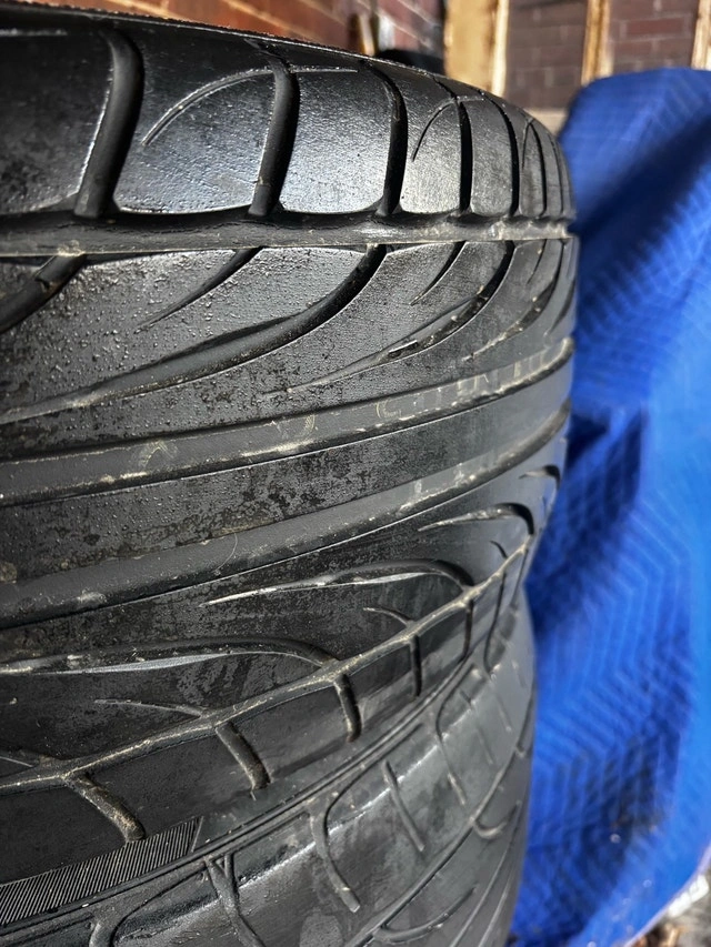 Selling a full set of 4 wheels with tires. Rim size: 20x8.5. Tire size: 255/45ZR20 105Y. 5-lug wheels (please verify fitment on your car). Black multi-spoke style. Tires hold air, wheels are straight. Includes balance weights. Price: $600 for the set (selling as a package only). Pickup in Toronto. If you know your bolt pattern/fitment, bring your info and we can double-check visually.