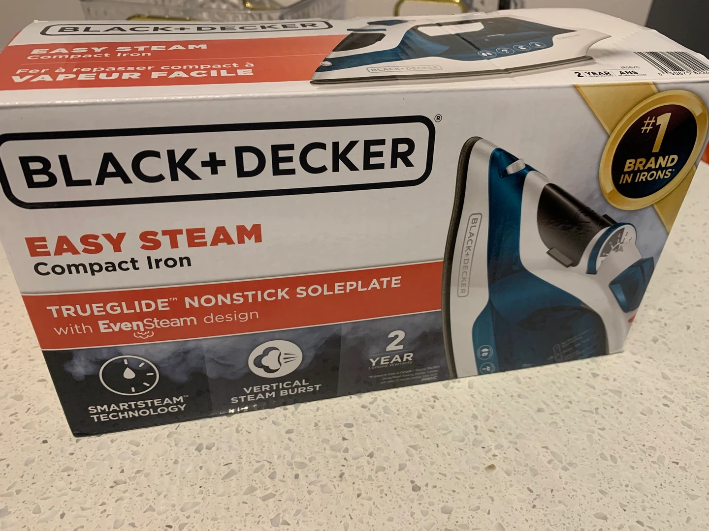 This Black+Decker Easy Steam compact iron features a TrueGlide™ nonstick soleplate with EvenSteam design. It includes SmartSteam™ technology and a vertical steam burst function. This iron is great for quick touch-ups and travel!
