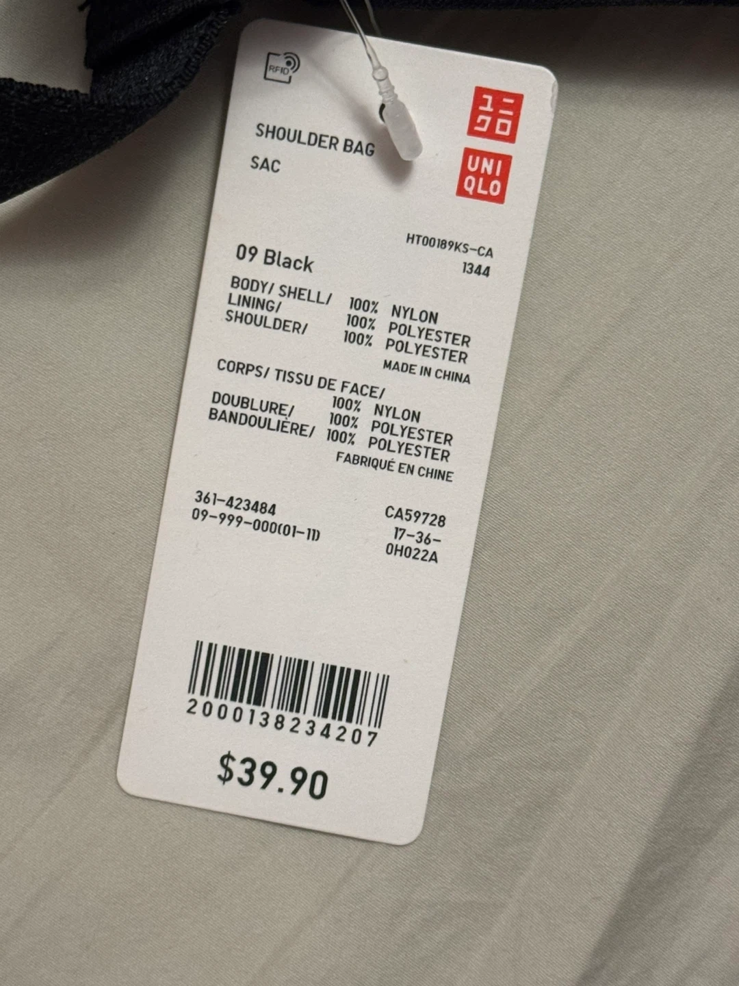 This UNIQLO shoulder bag is unisex , black colour, made from 100% nylon, 100% polyester lining, and shoulder strap.
