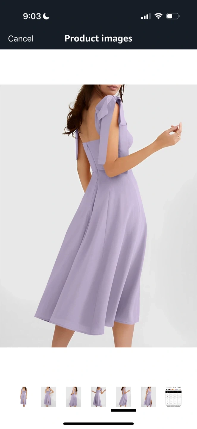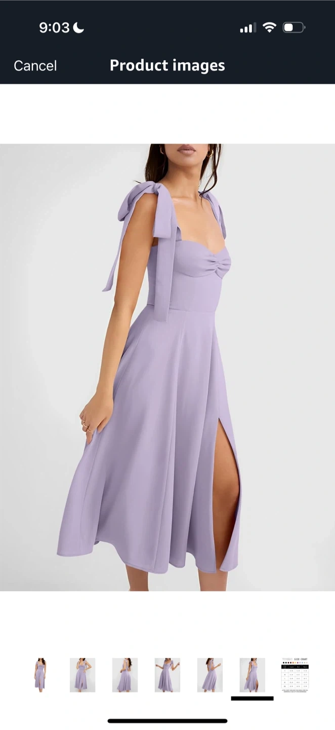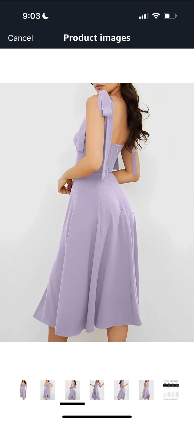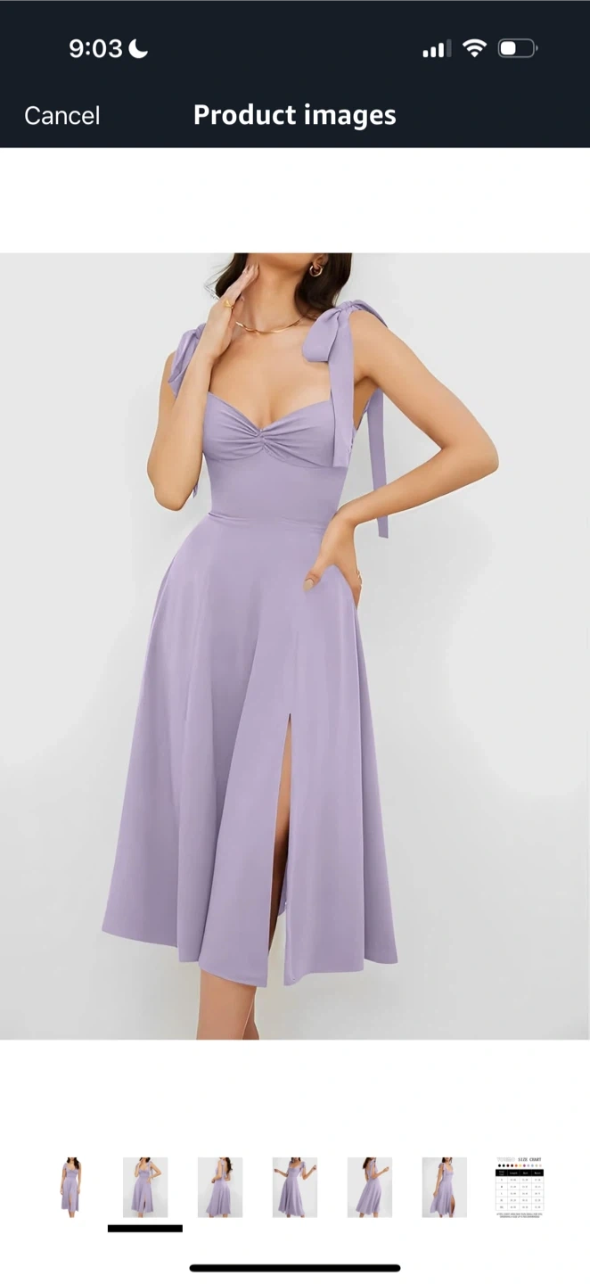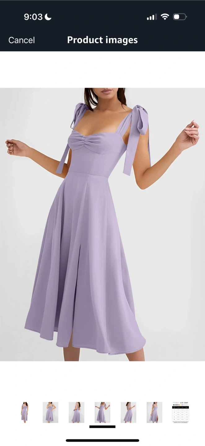A beautiful lilac dress with a sweetheart neckline and adjustable tie straps. It features a flattering A-line skirt with a stylish side slit. Perfect for weddings or special occasions! Bought it as wedding guest dress but never worn and chose other options instead, selling for cheap!