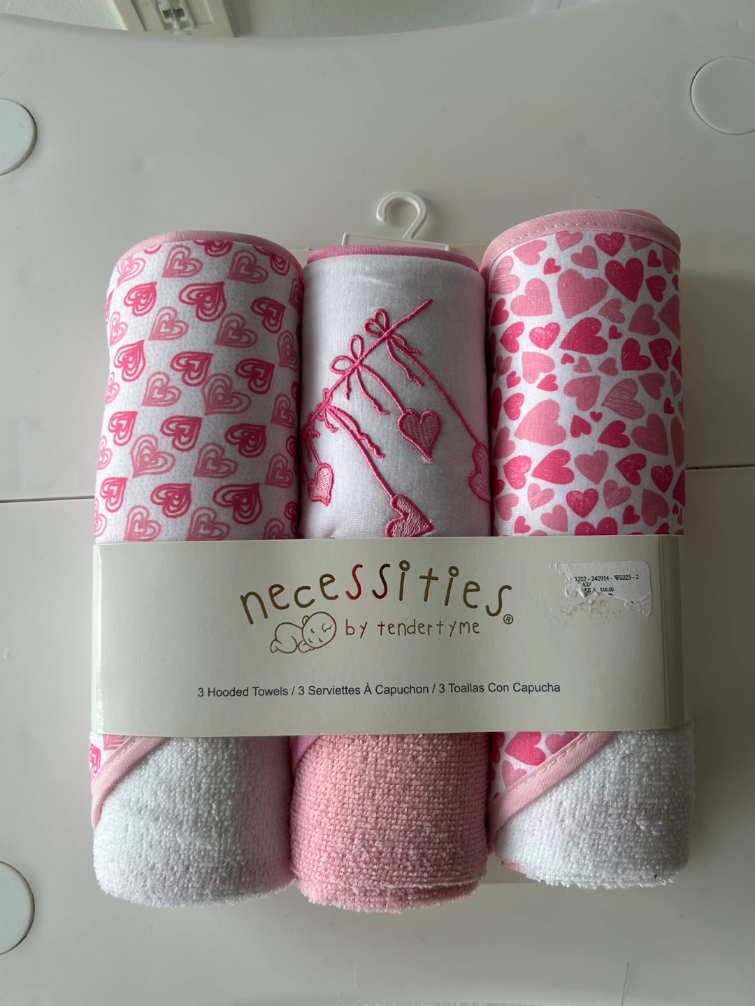 Necessities by Tendertyme 3 Hooded Towels Set - Pink Hearts