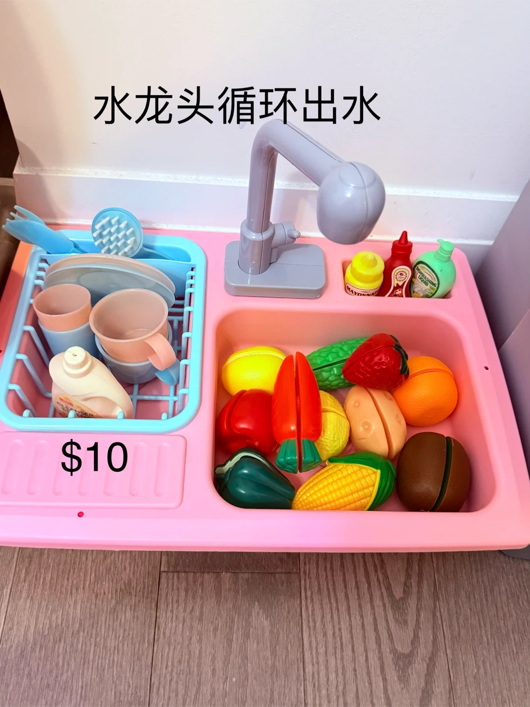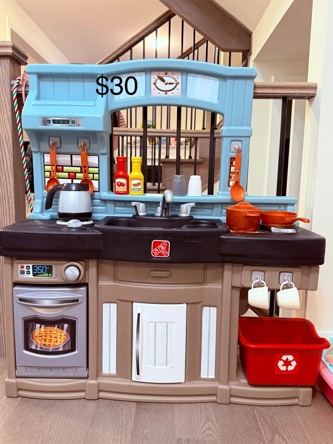 This is a play kitchen set from Step2 and a fridge from Little Tikes. It comes with various accessories for pretend play. Great for developing kids' imagination!