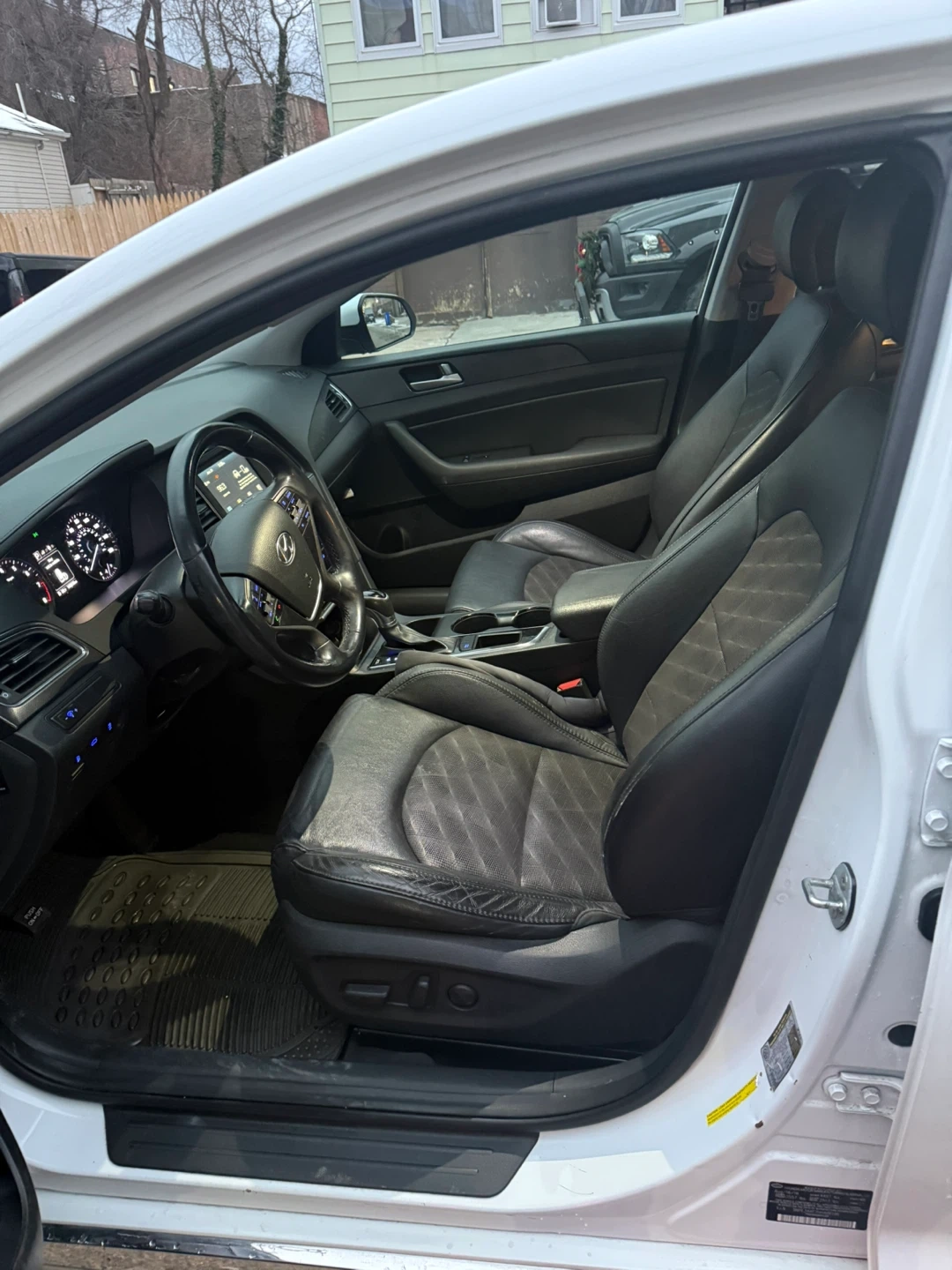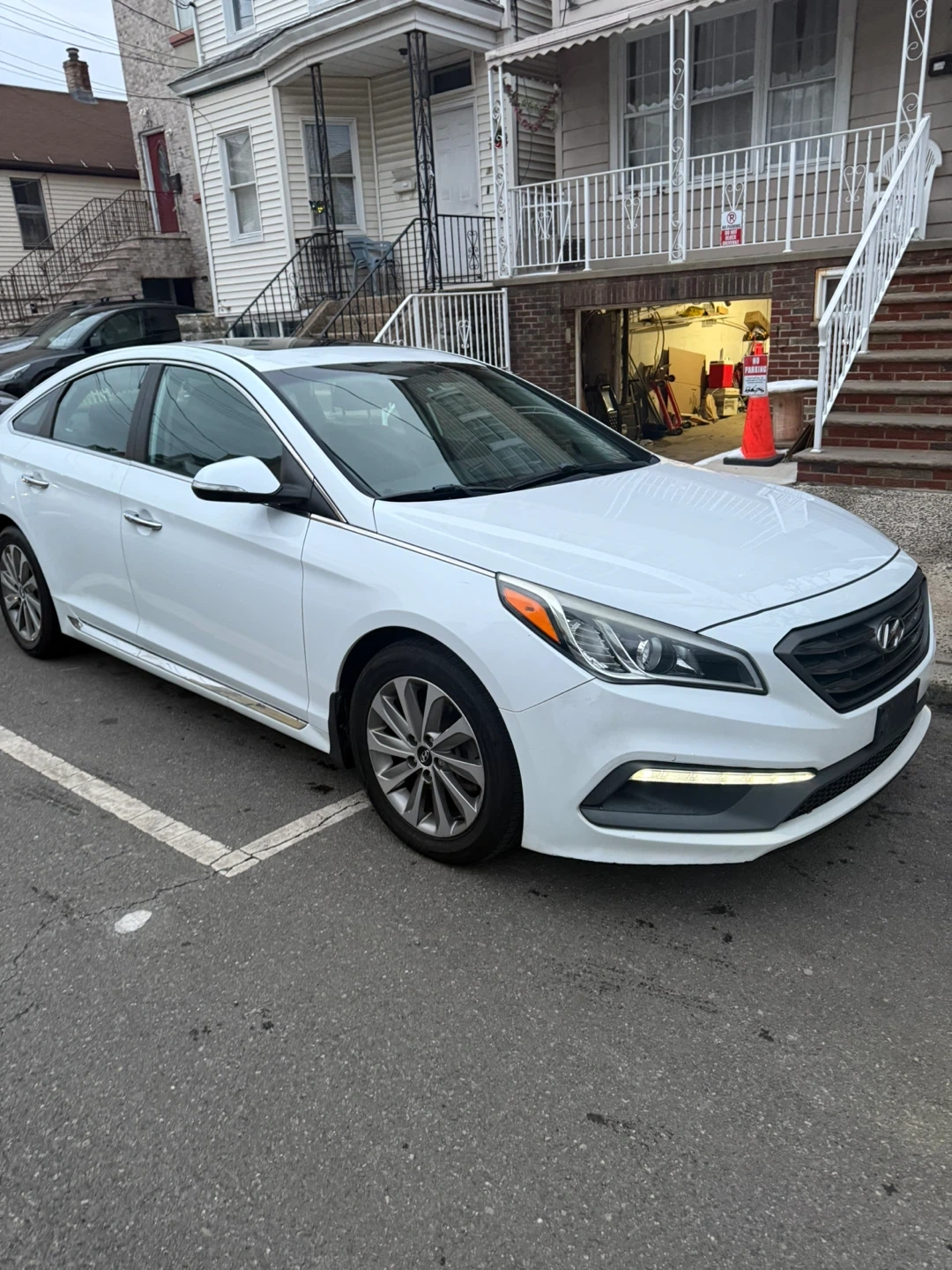 This is a white Hyundai Sonata sedan. It has a sunroof and alloy wheels. A clean and reliable sedan for everyday use! For sale: 2017 Hyundai Sonata Sport with 146,818 miles, in very good overall condition and no mechanical issues.