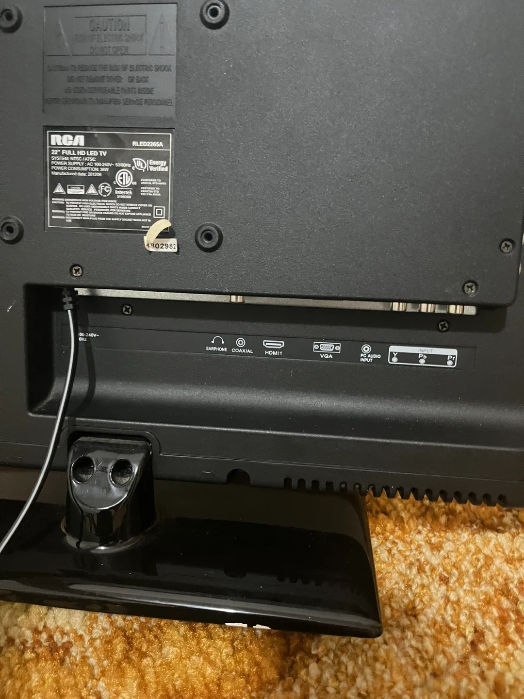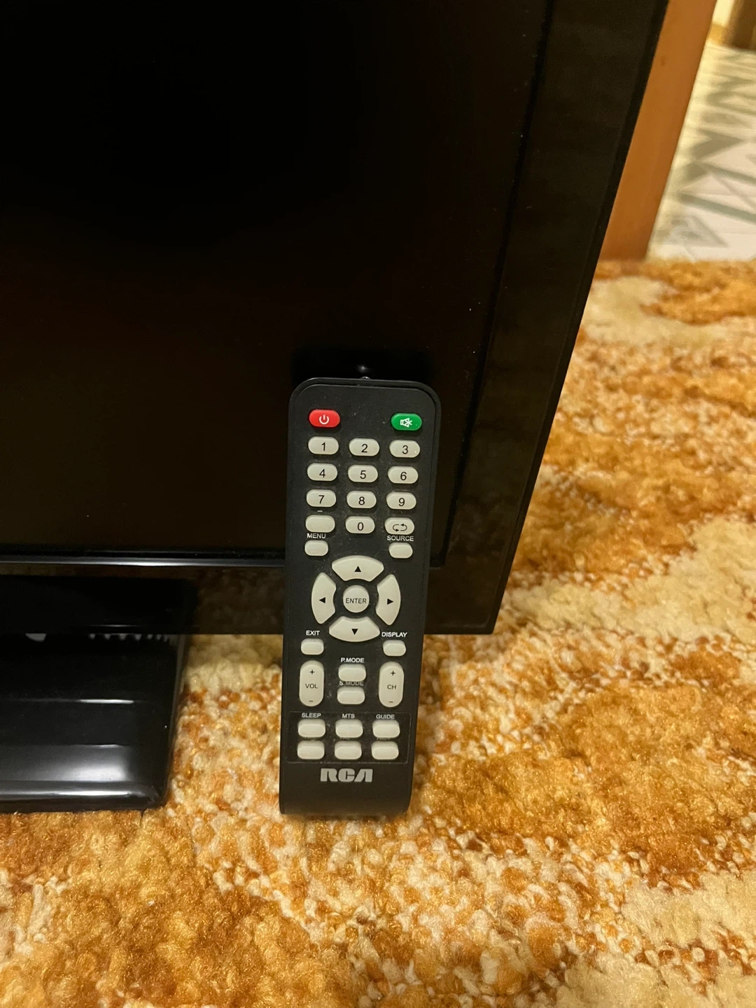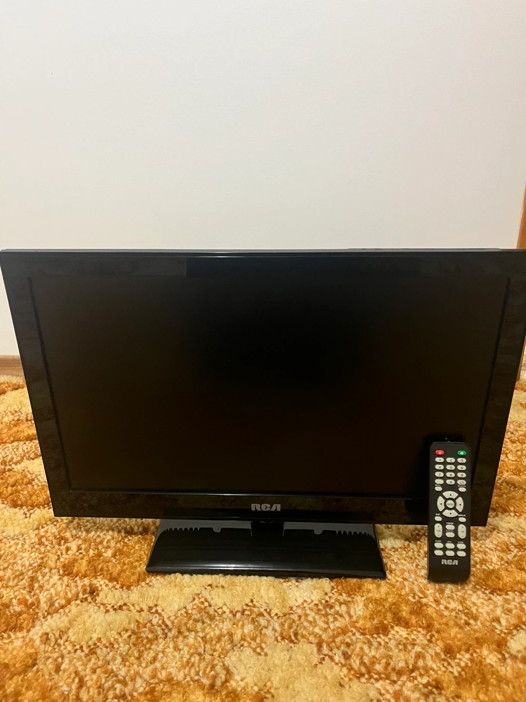 This is an RCA 24-inch flat-screen TV. It comes with a remote control for easy operation. The back of the TV has HDMI and other input ports.