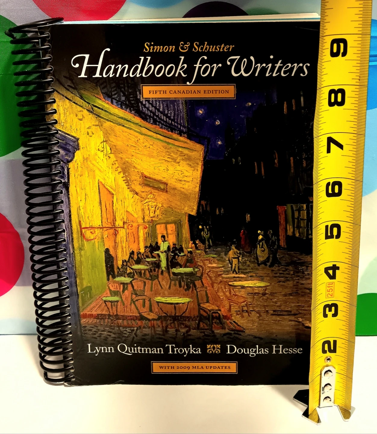 This is the Simon & Schuster Handbook for writers, fifth Canadian edition, perfect for any student or writer. I am pricing it at the higher end of the used value because it is still in very good condition. It contains the 2009 MLA updates.