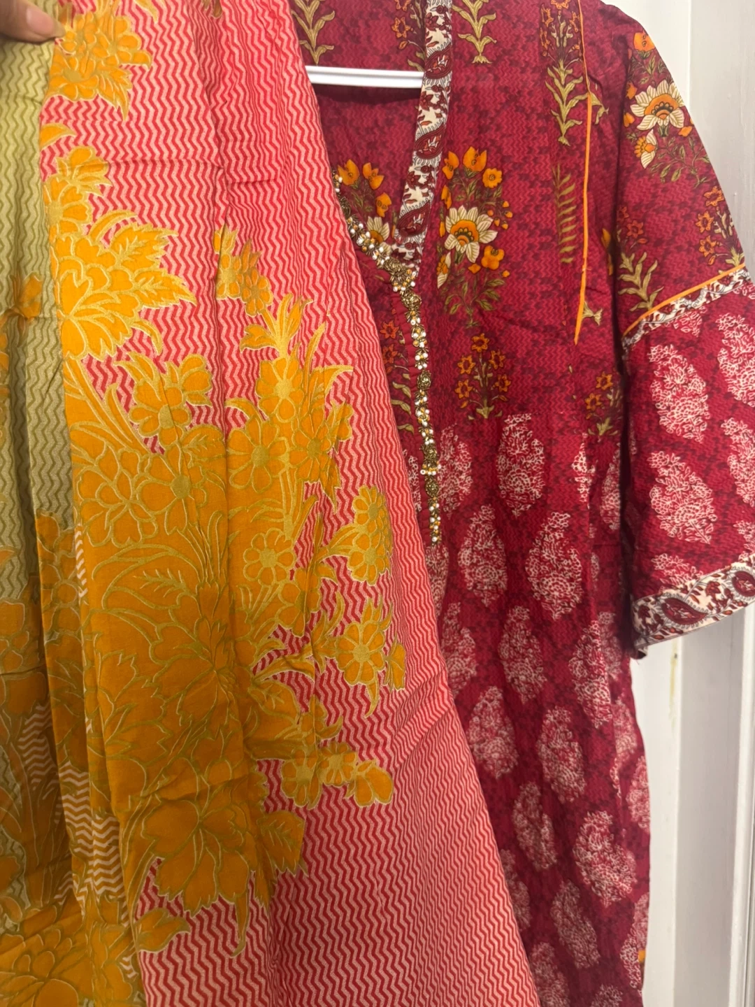 3pcs Red Floral Print dress with Dupatta