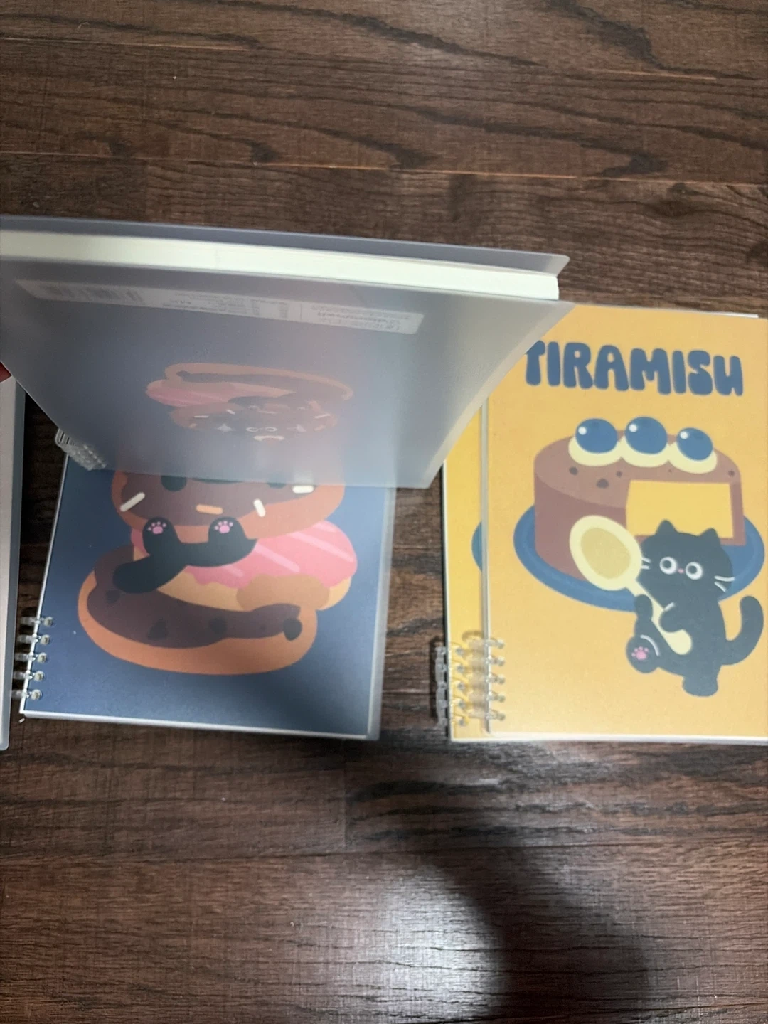 Adorable set of four spiral-bound notebooks featuring cute cats and dessert designs like Tiramisu, Donuts, Cake Roll, and Ice Cream. These notebooks are perfect for jotting down notes or as a fun gift!