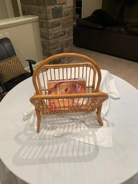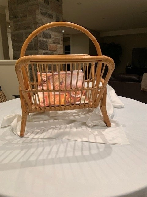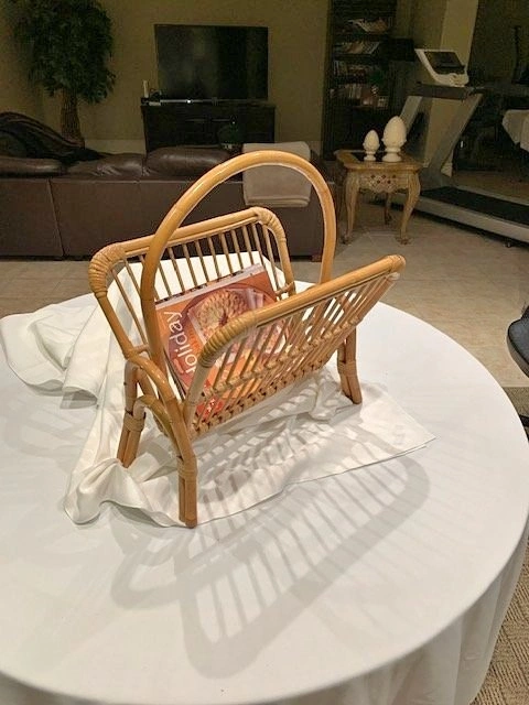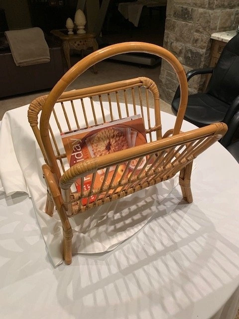 Vintage Rattan / Bamboo Magazine Rack from the 1970s. Width 18", Height 24". In mint condition. From a smoke-free, pet-free home. Cash only. Located in Richmond Hill near Bathurst and King Rd.