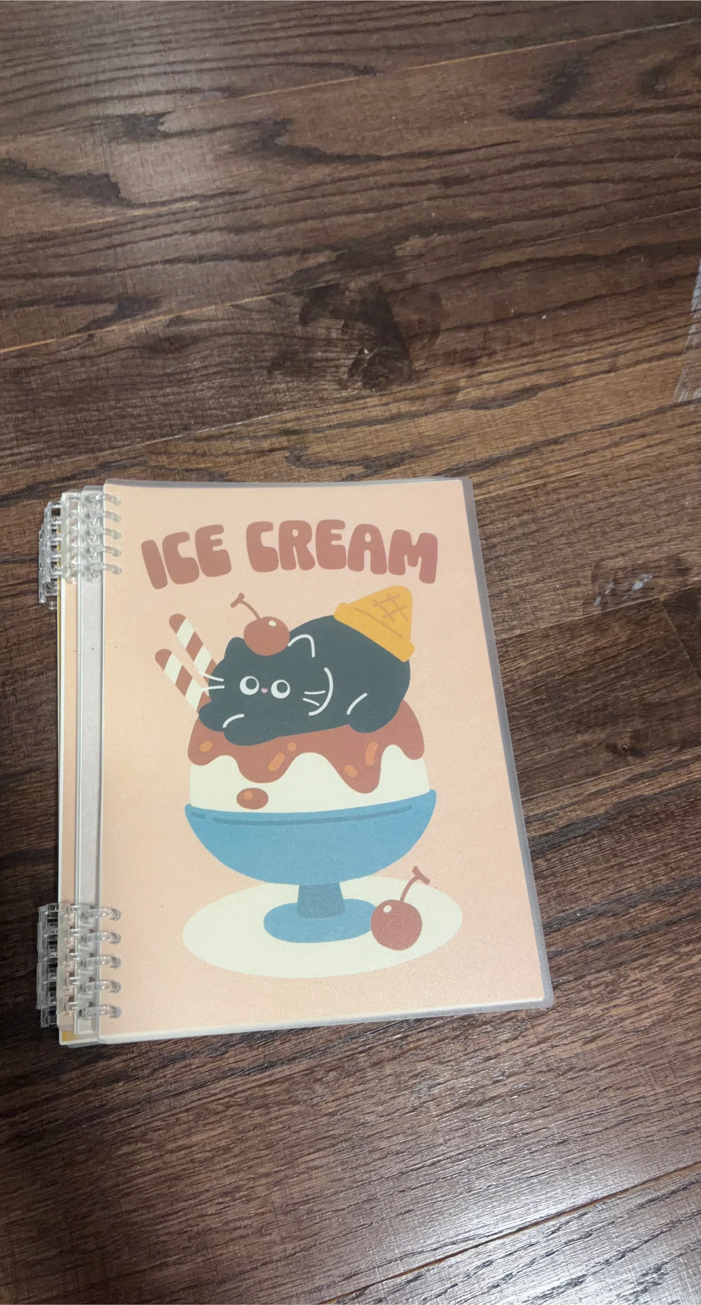 Cute spiral-bound notebook featuring an adorable ice cream cat design. Great for jotting down notes or drawings! Spiral binding allows it to lay flat for easy writing.