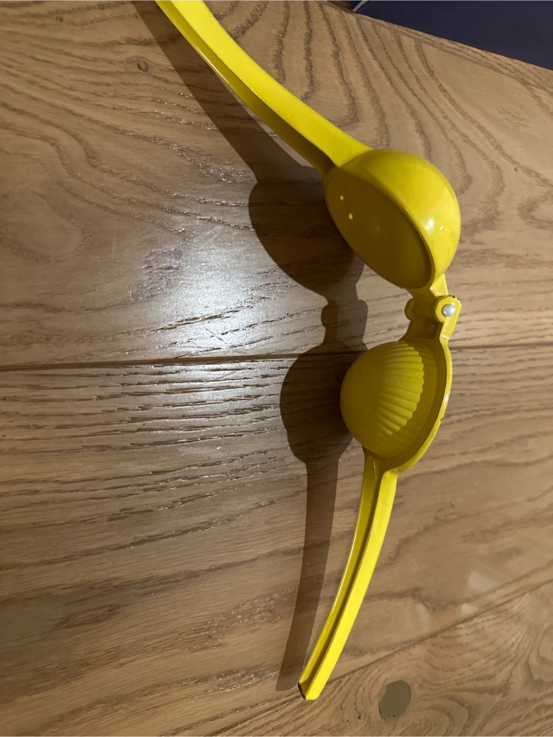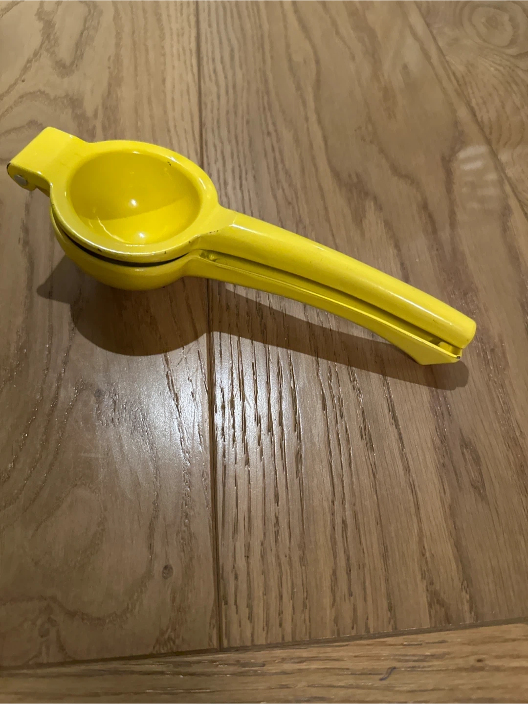 This yellow citrus juicer is designed for squeezing lemons and limes. It's made of sturdy metal for easy juice extraction. Useful for getting fresh juice quickly for cooking or drinks!