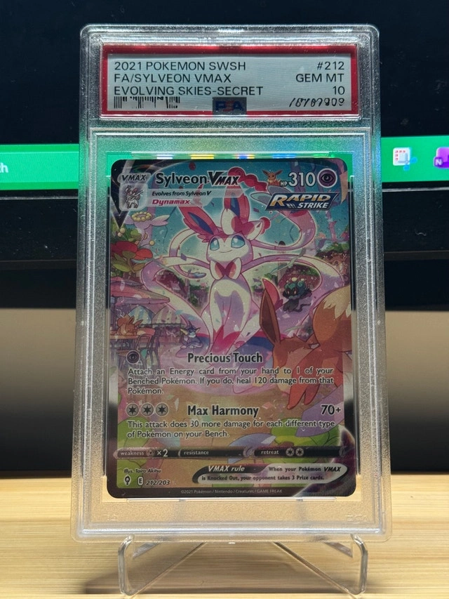 Buy & SellSylveon VMAX #212 PSA 10Sylveon VMAX #212 PSA 10$900SYLVEON VMAX SECRET ART RARE EVOLVING SKIES #212 PSA 10. Collectible Toys & Games. Feel free to message if you have any questions!WHERE TO MEETCheck LocationView MapSELLERjansonMalvern150 reviews1 chats·0 favorites·21 viewsSEND CHAT TO SELLERHi janson! I’m interested in your listing.Hi janson! I’m interested in your listing.Get the Karrot app to chatSign In to chat